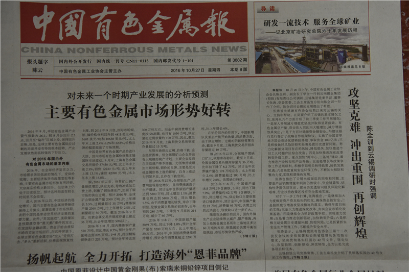 | 本報(bào)訊 10月20日上午,中國(guó)有色金屬工業(yè)協(xié)會(huì)會(huì)長(zhǎng)陳全訓(xùn)、副會(huì)長(zhǎng)丁學(xué)全一行到云南錫業(yè)集團(tuán)(控股)有限責(zé)任公司調(diào)研,云錫集團(tuán)黨委書記、董事長(zhǎng)張濤,黨委常委、工會(huì)主席湯發(fā)分別向陳全訓(xùn)一行作了介紹。陳全訓(xùn)對(duì)云錫的發(fā)展提出了希望。 張濤首先感謝有色協(xié)會(huì)長(zhǎng)期以來對(duì)云錫的關(guān)心、支持和幫助。在簡(jiǎn)要介紹了云錫的基本情況之后,張濤從六個(gè)方面介紹了前三季度工作開展情況:一是深入開展減虧增盈攻堅(jiān)戰(zhàn)并取得顯著成效。有色金屬總產(chǎn)量、營(yíng)業(yè)收入同比均大幅增加,減虧增盈效果突出;二是千方百計(jì)確保資金鏈安全。與建設(shè)銀行總行簽訂了戰(zhàn)略合作框架協(xié)議,實(shí)施了全國(guó)首單地方國(guó)企市場(chǎng)化債轉(zhuǎn)股落地,爭(zhēng)取資金100億元;三是積極做好風(fēng)險(xiǎn)防控和妥善處置歷史遺留問題。努力化解部分項(xiàng)目存在的風(fēng)險(xiǎn),降低損失,加快推進(jìn)個(gè)舊工人村棚戶區(qū)綜合改造;四是加快推進(jìn)深化改革轉(zhuǎn)型升級(jí)工作。重點(diǎn)加快“兩中心、三基地”建設(shè),著力推進(jìn)產(chǎn)業(yè)轉(zhuǎn)型和產(chǎn)品升級(jí);五是穩(wěn)增長(zhǎng)等政策爭(zhēng)取工作進(jìn)展順利。積極爭(zhēng)取相關(guān)扶持政策,搶抓發(fā)展機(jī)遇;六是高度重視安全環(huán)保工作。不斷加大預(yù)防和整治力度,實(shí)現(xiàn)和諧綠色發(fā)展。 張濤也指出了云錫當(dāng)前面臨的困難和問題,主要是產(chǎn)品銷售增量和利潤(rùn)仍然較小、資金鏈緊張、結(jié)構(gòu)性矛盾依舊突出、部分歷史遺留問題及風(fēng)險(xiǎn)化解艱難、行業(yè)扶持政策還沒有完全落地實(shí)施。 對(duì)于下一步工作打算,張濤提出,一是繼續(xù)加大力度做好資產(chǎn)資本結(jié)構(gòu)的優(yōu)化,確保資金鏈安全;二是狠抓減虧增盈攻堅(jiān)戰(zhàn)措施的落實(shí),確保年度目標(biāo)的實(shí)現(xiàn);三是大力推進(jìn)深化改革,夯實(shí)企業(yè)市場(chǎng)化發(fā)展基礎(chǔ);四是繼續(xù)全力抓好政策爭(zhēng)取,實(shí)現(xiàn)借力發(fā)展;五是著力推進(jìn)創(chuàng)新驅(qū)動(dòng),加快轉(zhuǎn)型升級(jí);六是積極主動(dòng)處置歷史遺留問題,防控風(fēng)險(xiǎn);七是抓緊抓實(shí)安全生產(chǎn)管理工作,不斷提升安全水平。 張濤表示,云錫將按照有色協(xié)會(huì)三屆十二次會(huì)長(zhǎng)會(huì)議的安排部署和云南省穩(wěn)增長(zhǎng)各項(xiàng)指示要求,堅(jiān)決貫徹落實(shí)好國(guó)辦42號(hào)文件,堅(jiān)定信心、攻堅(jiān)脫困、創(chuàng)新驅(qū)動(dòng)、深改轉(zhuǎn)型,全力以赴完成各項(xiàng)目標(biāo)任務(wù)。 云錫控股公司黨委常委、工會(huì)主席湯發(fā)介紹了貫徹落實(shí)國(guó)辦42號(hào)文的工作情況,并就關(guān)于幫助協(xié)調(diào)有關(guān)部門將錫業(yè)股份列入符合工信部《銅冶煉行業(yè)規(guī)范條件》企業(yè)目錄、開展銅精礦加工貿(mào)易業(yè)務(wù)等七個(gè)方面的事宜,懇請(qǐng)有色協(xié)會(huì)幫助協(xié)調(diào)國(guó)家有關(guān)部委、云南省相關(guān)部門等給予政策支持、稅費(fèi)減免或資金支持等,希望在有色協(xié)會(huì)的指導(dǎo)和幫助下,進(jìn)一步加強(qiáng)與政策對(duì)口部委的溝通聯(lián)系,積極反映云錫的訴求,力爭(zhēng)各項(xiàng)政策早日落地,云錫將抓緊做好政策落地后的操作流程和程序研究工作,讓政策的紅利早日惠及云錫。 聽取了工作匯報(bào)后,陳全訓(xùn)指出,你們提到的42號(hào)文件政策的爭(zhēng)取,協(xié)會(huì)十分重視,將給予大力支持。有色協(xié)會(huì)就是要為企業(yè)服務(wù),你們的有些請(qǐng)求事項(xiàng)涉及有關(guān)部委,需要花大力氣落實(shí),你們提的這些問題我們是可以支持的。回去后有色協(xié)會(huì)要把這些問題分解,分送給有關(guān)部門,請(qǐng)求幫助解決。但工作的主體還是云錫,你們要積極反映、溝通和交流。對(duì)于有關(guān)政策能爭(zhēng)取多少算多少,國(guó)家的政策不是一兩天就能爭(zhēng)取到的,比如收儲(chǔ)這件事,到現(xiàn)在還沒有真正落實(shí),要持之以恒。 陳全訓(xùn)強(qiáng)調(diào),聽了你們的情況匯報(bào),給我的感覺是,云錫雖然目前遇到了一些暫時(shí)的困難,但志氣沒有滅,精神沒有倒。特別是張濤同志來到云錫之后,整個(gè)班子的精神狀態(tài)很好,工作非常努力。云錫提出“三年打基礎(chǔ),五年大翻身,十年創(chuàng)輝煌”的目標(biāo),我認(rèn)為這是符合云錫實(shí)際的,完全能夠做到。你們現(xiàn)在遇到的困難無非是歷史、市場(chǎng)等原因造成的,這些困難是完全能夠克服的。希望公司領(lǐng)導(dǎo)班子精誠(chéng)團(tuán)結(jié),在以張濤為核心的領(lǐng)導(dǎo)班子的帶領(lǐng)下,有國(guó)家42號(hào)文的指引、中央各部委的支持和云南省委省政府的正確領(lǐng)導(dǎo),云錫的奮斗目標(biāo)完全能夠?qū)崿F(xiàn)。我相信市場(chǎng)一定會(huì)逐漸向好,云錫也一定能打好翻身仗,我對(duì)此很有信心。比如你們實(shí)施的債轉(zhuǎn)股,現(xiàn)在就實(shí)