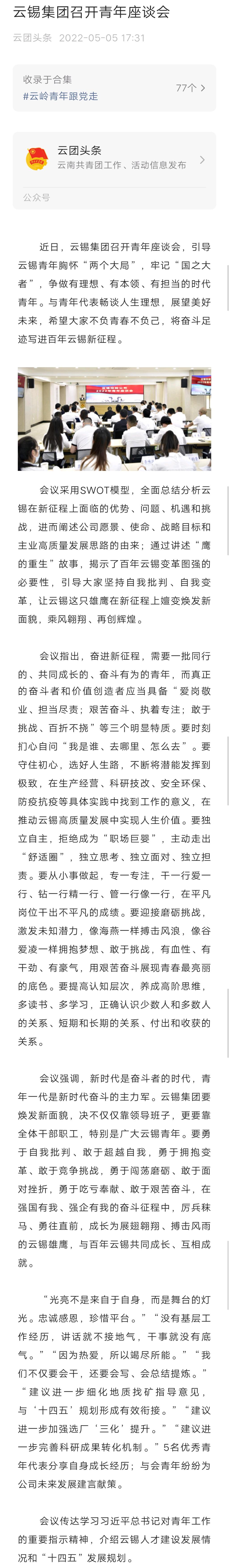 云團(tuán)頭條:云錫集團(tuán)召開青年座談會(huì)