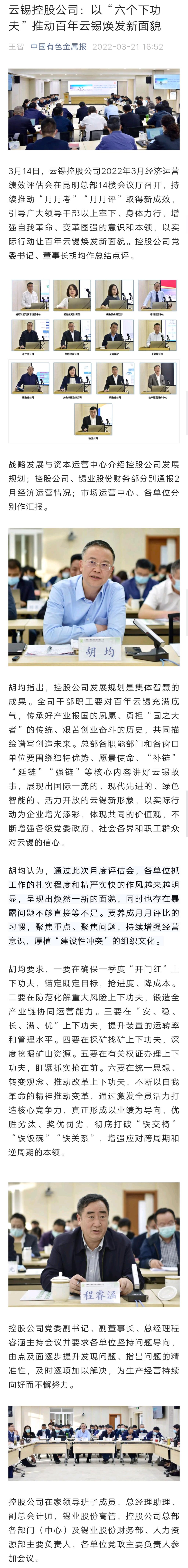 中國有色金屬報:云錫控股公司:以“六個下功夫”推動百年云錫煥發(fā)新面貌