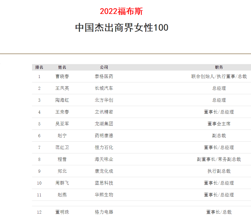 福布斯中國發(fā)文指出,100位活躍在中國的商界女性再次用行動證明,性別和年齡不能成為定義成功的標準。在過去不確定的一年里,女性企業(yè)家在不斷創(chuàng)造更大商業(yè)成功的同時,也在承擔更多的社會責任。