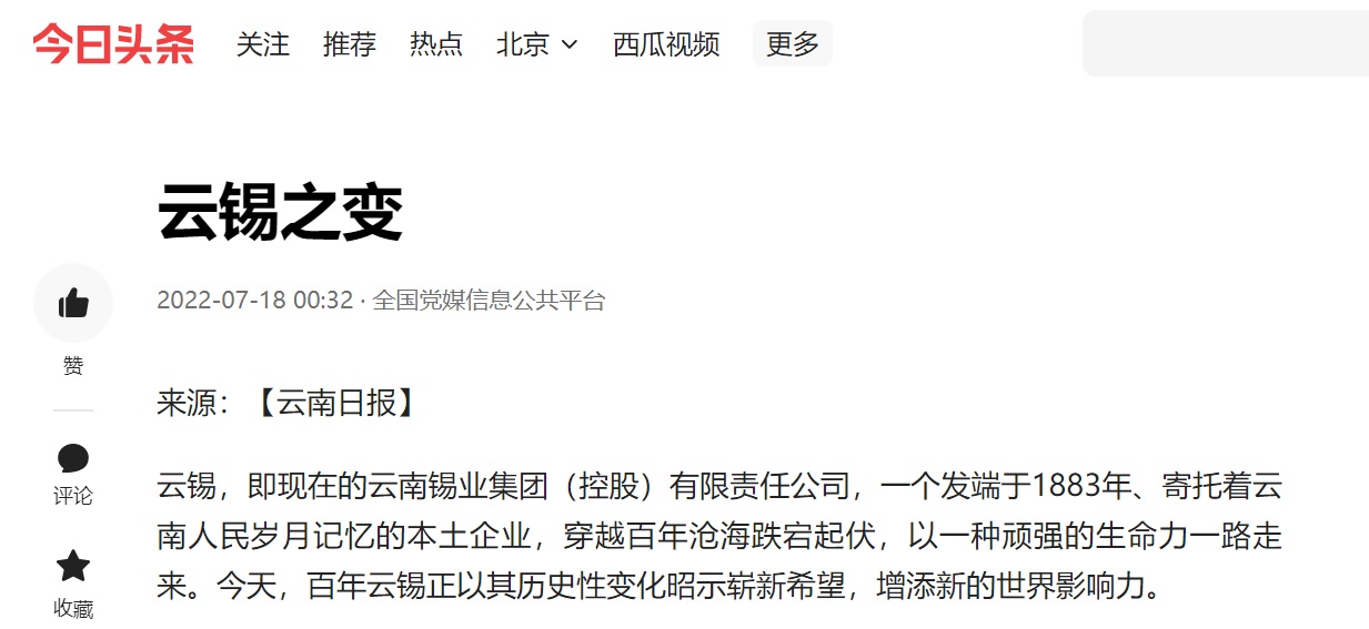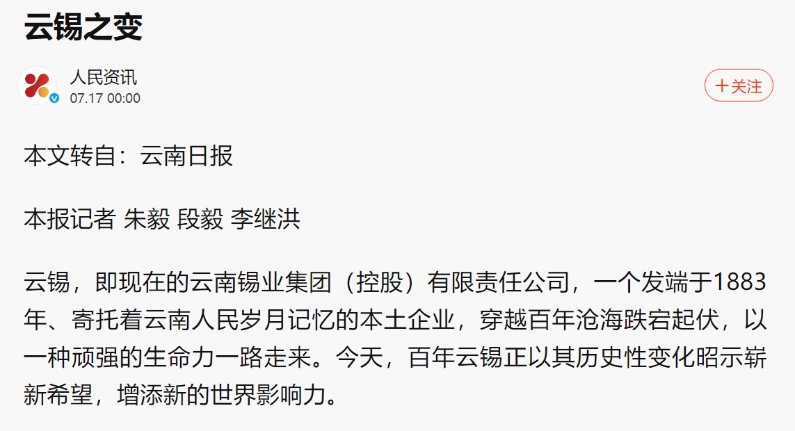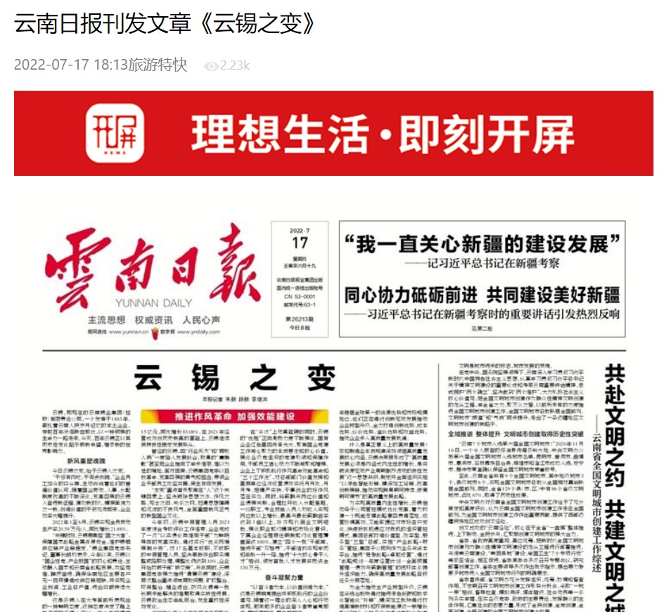 來源:學(xué)習(xí)強(qiáng)國(guó)、新華財(cái)經(jīng)、云南國(guó)資、中國(guó)有色金屬報(bào)、今日頭條、新浪新聞、澎湃云南、文旅頭條、開屏新聞