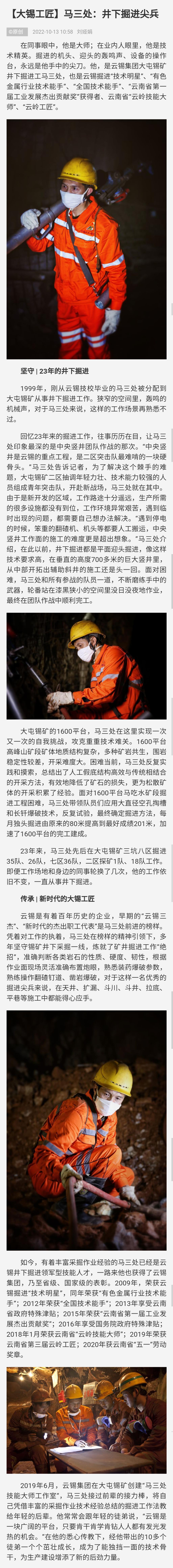 文旅頭條:【大錫工匠】馬三處:井下掘進(jìn)尖兵