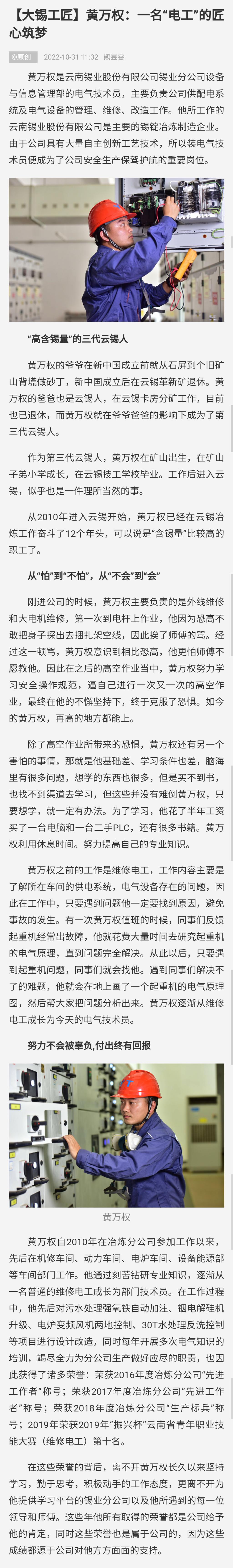 文旅頭條:【大錫工匠】黃萬權(quán):一名“電工”的匠心筑夢