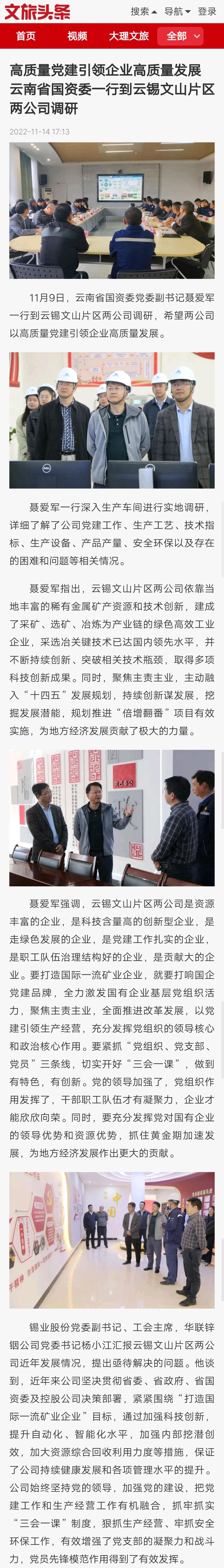 文旅頭條:高質(zhì)量黨建引領(lǐng)企業(yè)高質(zhì)量發(fā)展 云南省國資委一行到云錫文山片區(qū)兩公司調(diào)研