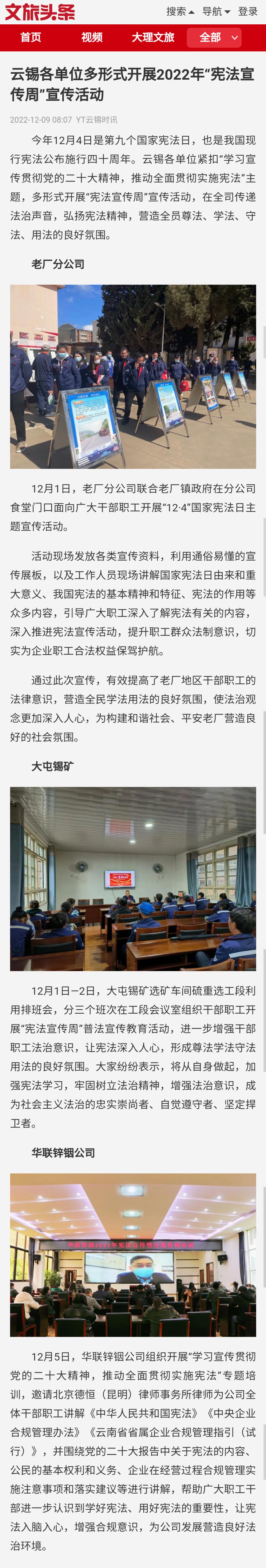 文旅頭條:云錫各單位多形式開展2022年“憲法宣傳周”宣傳活動(dòng)