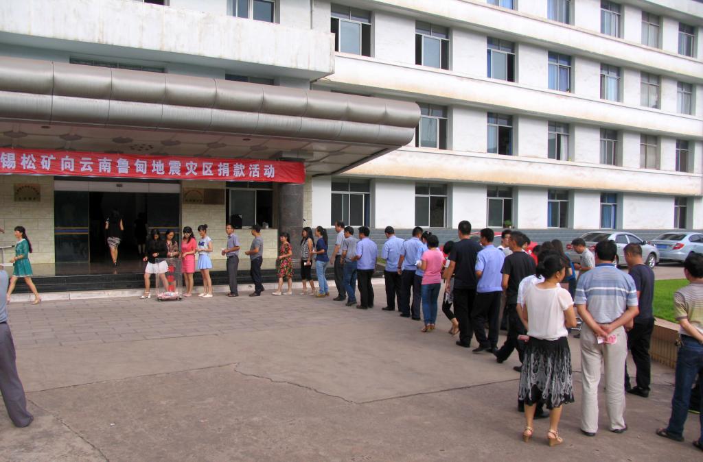 云南省個舊市云錫松樹腳分礦日前組織員工開展了向云南魯?shù)榈卣馂?zāi)區(qū)捐款活動。