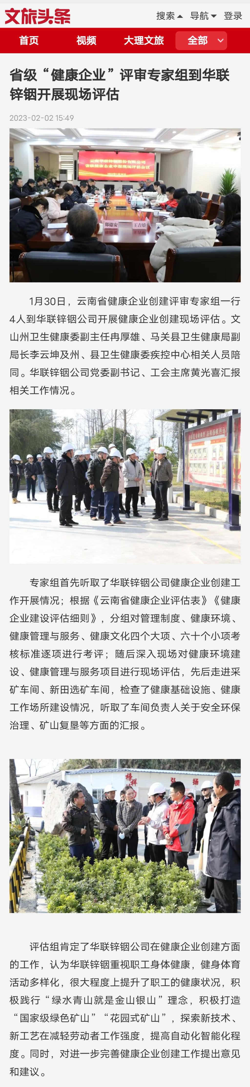文旅頭條:省級(jí)“健康企業(yè)”評(píng)審專家組到華聯(lián)鋅銦開展現(xiàn)場評(píng)估