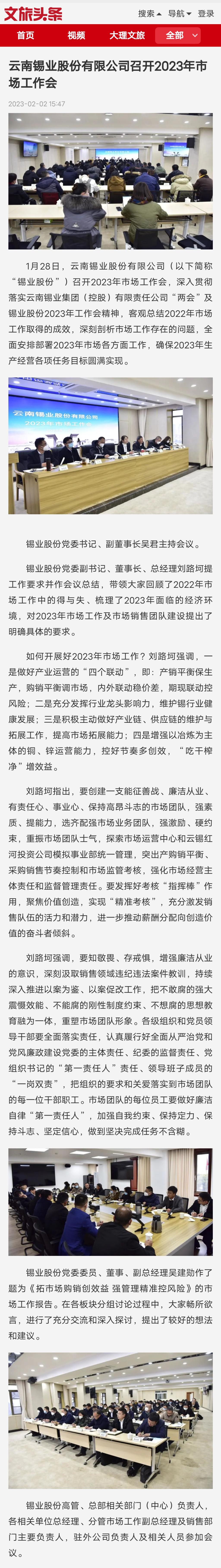 文旅頭條:云南錫業(yè)股份有限公司召開2023年市場工作會