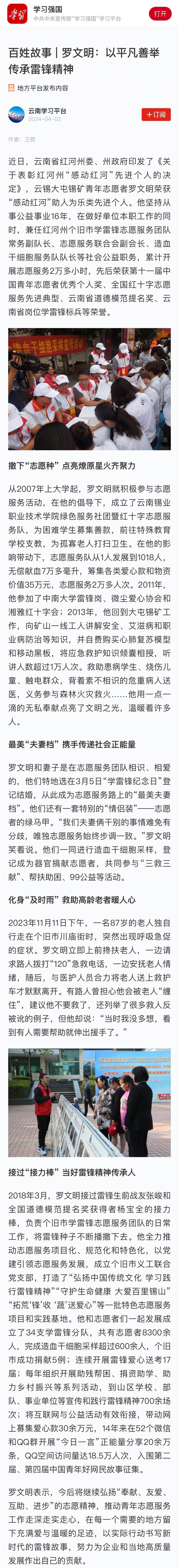 學(xué)習(xí)強(qiáng)國:【百姓故事】羅文明:以平凡善舉傳承雷鋒精神