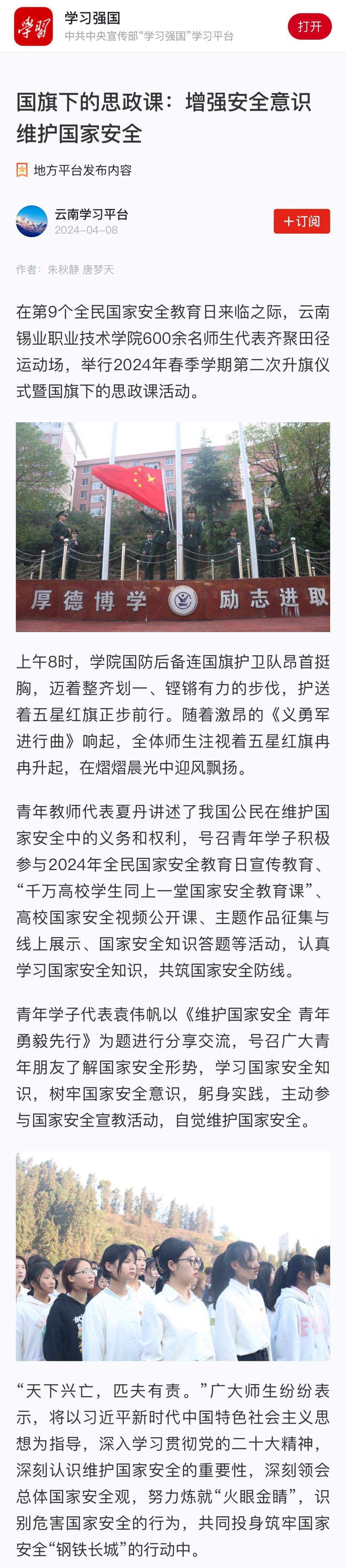 學(xué)習(xí)強(qiáng)國(guó):【國(guó)旗下的思政課】增強(qiáng)安全意識(shí) 維護(hù)國(guó)家安全