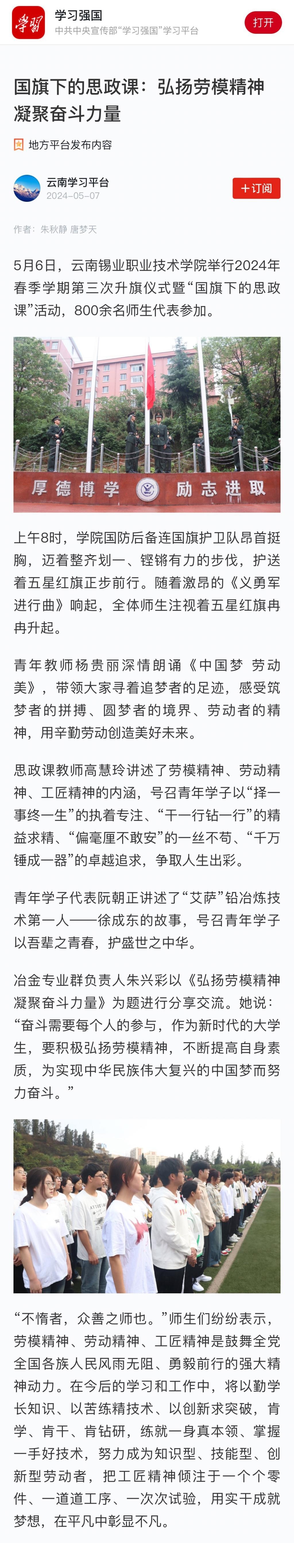 學(xué)習(xí)強國:【國旗下的思政課】弘揚勞模精神 凝聚奮斗力量