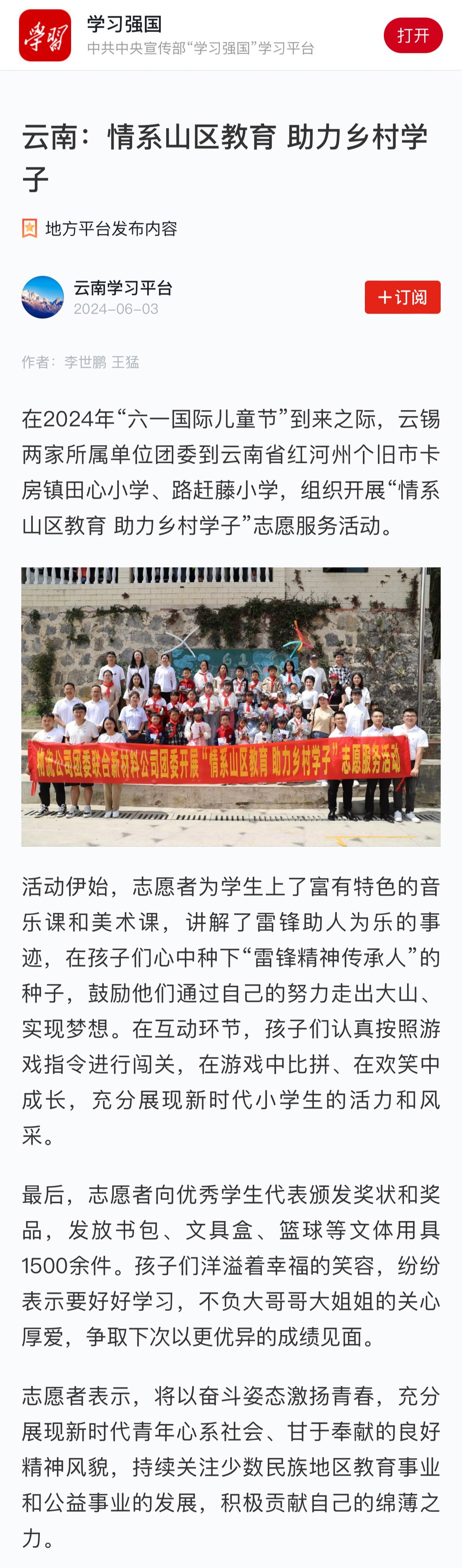 學(xué)習(xí)強(qiáng)國:云南情系山區(qū)教育 助力鄉(xiāng)村學(xué)子