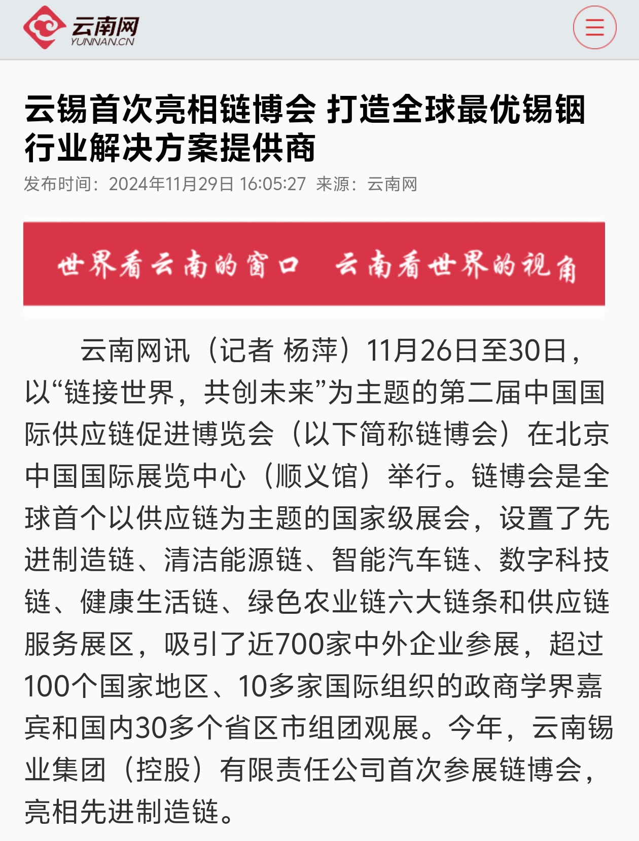 來(lái)源:中國(guó)貿(mào)易新聞網(wǎng)、云南網(wǎng)、云南政協(xié)報(bào)、云南經(jīng)濟(jì)日?qǐng)?bào)、中國(guó)有色金屬報(bào)、礦業(yè)界