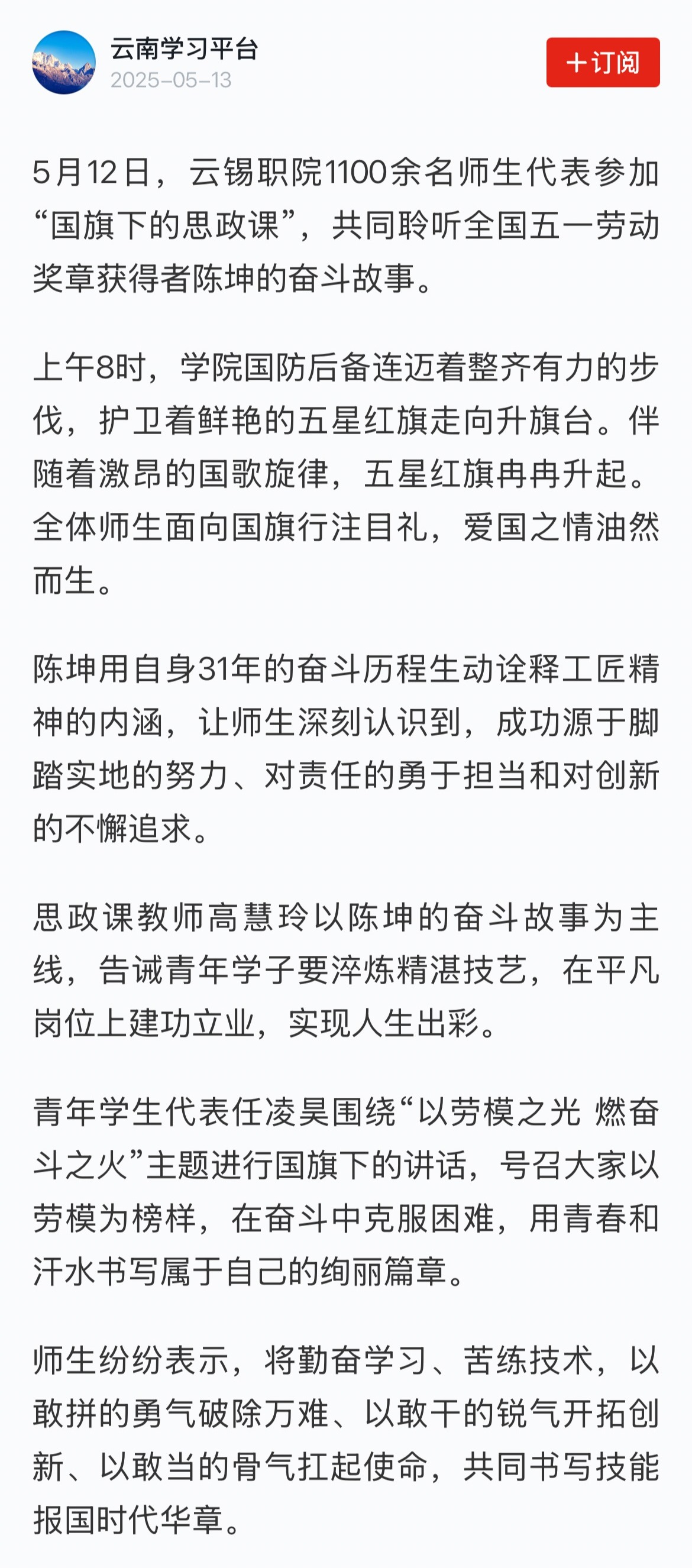 學(xué)習(xí)強(qiáng)國(guó):云錫職院以勞模之光 燃奮斗之火