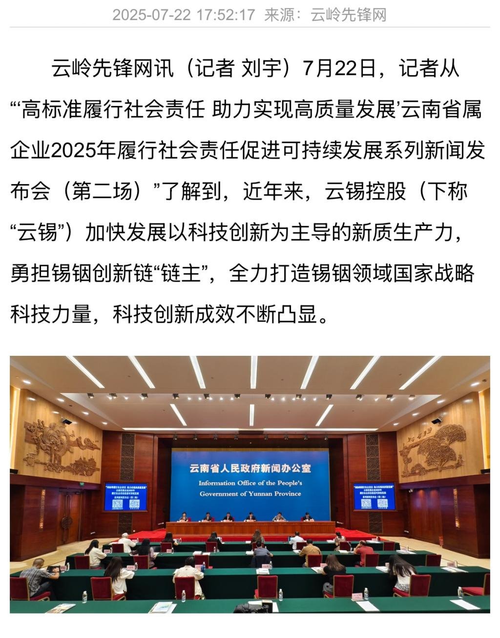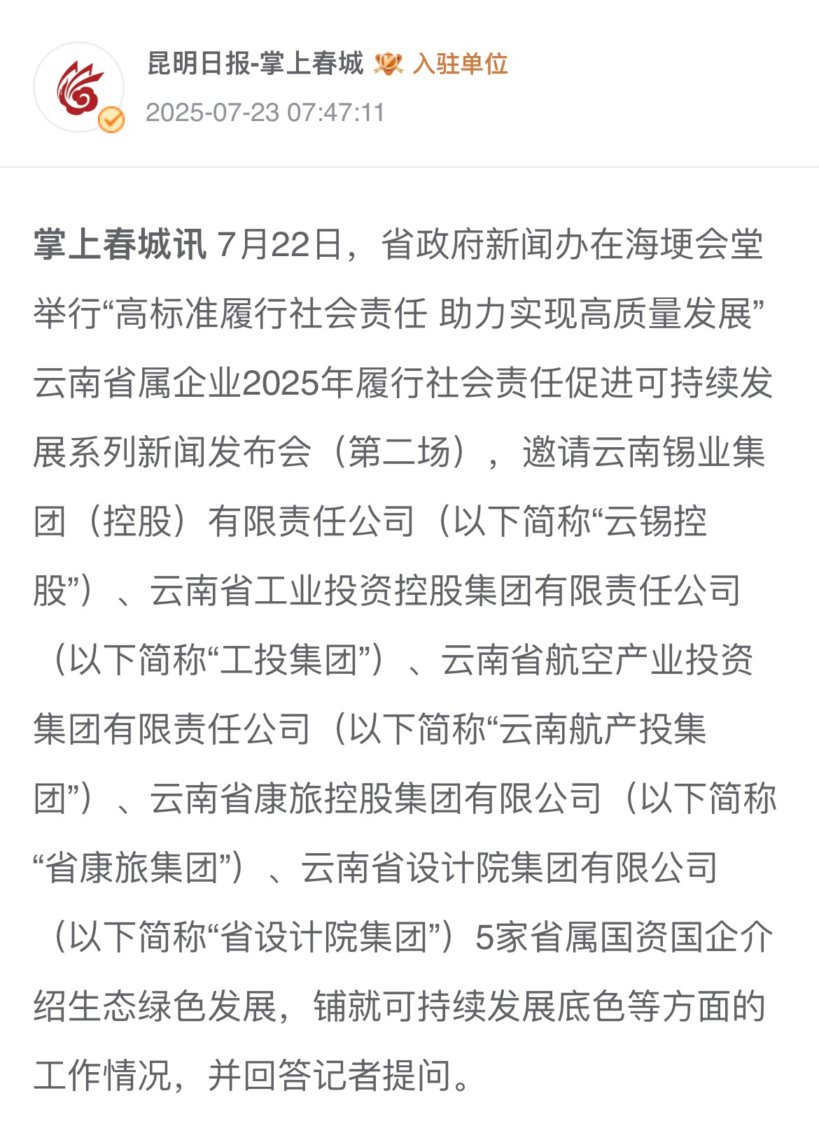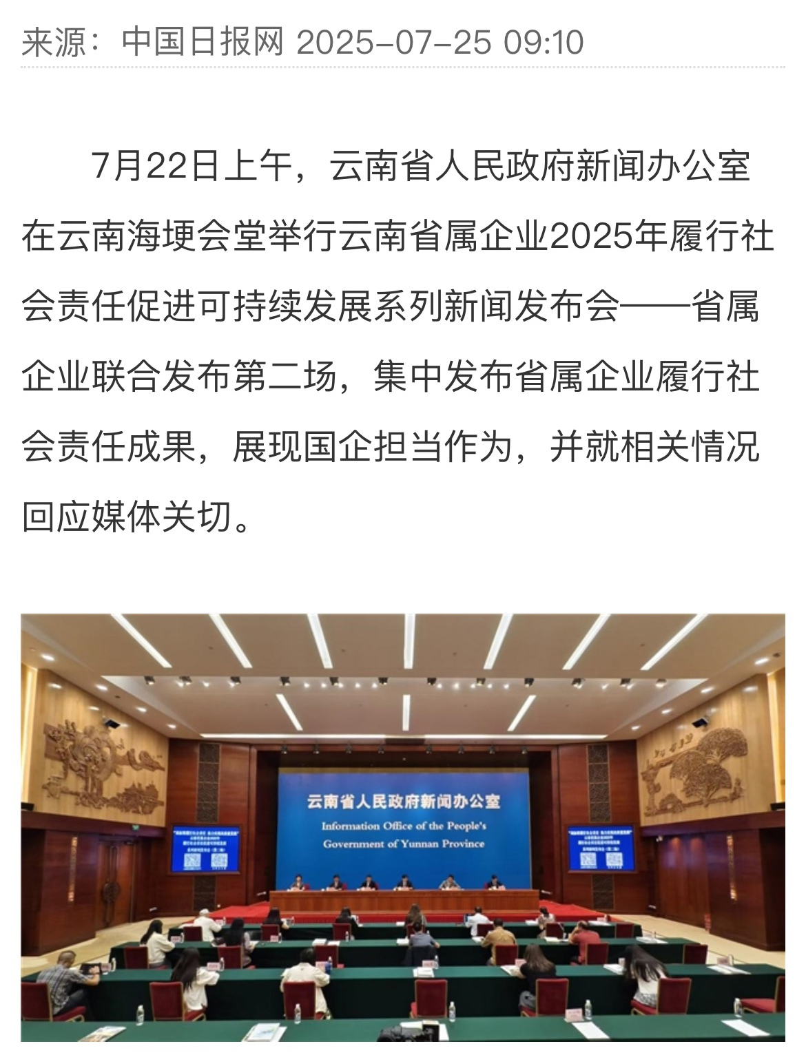 來源:央廣網(wǎng)、央視影音、新華網(wǎng)、新華時(shí)訊、新華財(cái)經(jīng)、中國日?qǐng)?bào)網(wǎng)、中國新聞網(wǎng)、中國網(wǎng)云南新聞聯(lián)播、中華網(wǎng)、云南衛(wèi)視晚間新聞、云南發(fā)布、云南日?qǐng)?bào)、云南日?qǐng)?bào)-云新聞、云南網(wǎng)、七彩云端、云南省人民政府、云嶺先鋒網(wǎng)、云南國資、云南政協(xié)報(bào)、有色金屬報(bào)、信息早報(bào)、中國有色金屬網(wǎng)、有色新聞、騰訊新聞、今日頭條、搜狐、網(wǎng)易、新浪微博、新浪財(cái)經(jīng)、新浪財(cái)經(jīng)、都市時(shí)報(bào)、國泰君安、昆明日?qǐng)?bào)、春城晚報(bào)、昆明信息港、開屏新聞