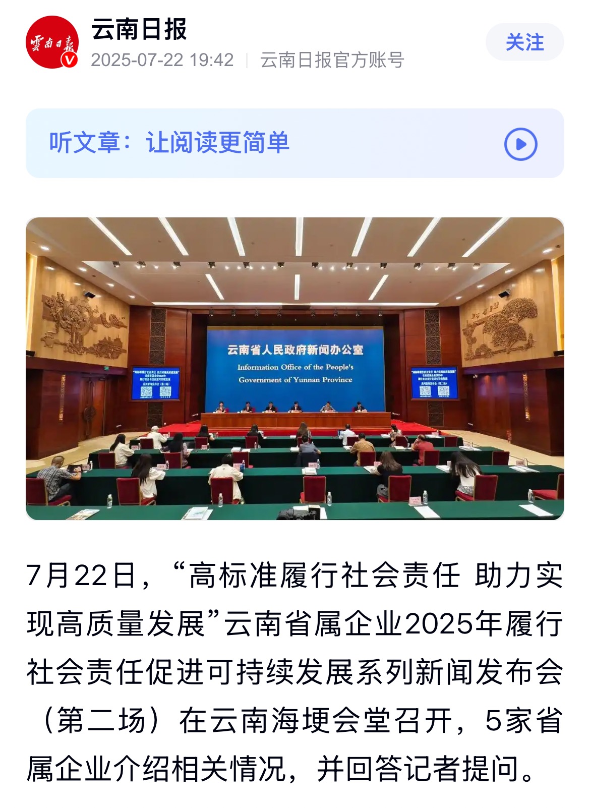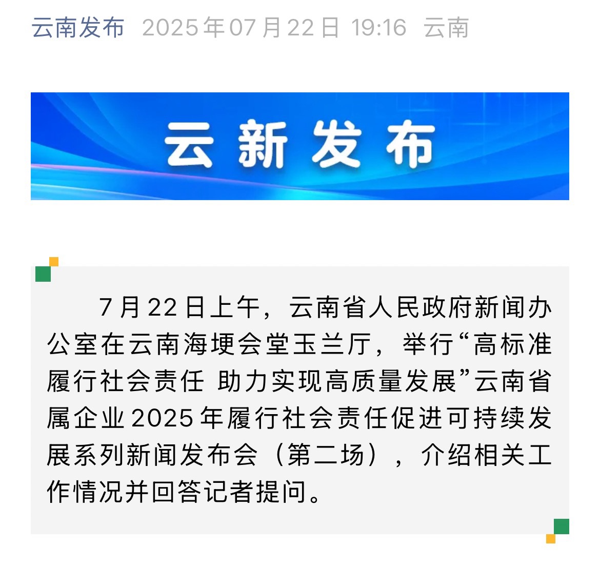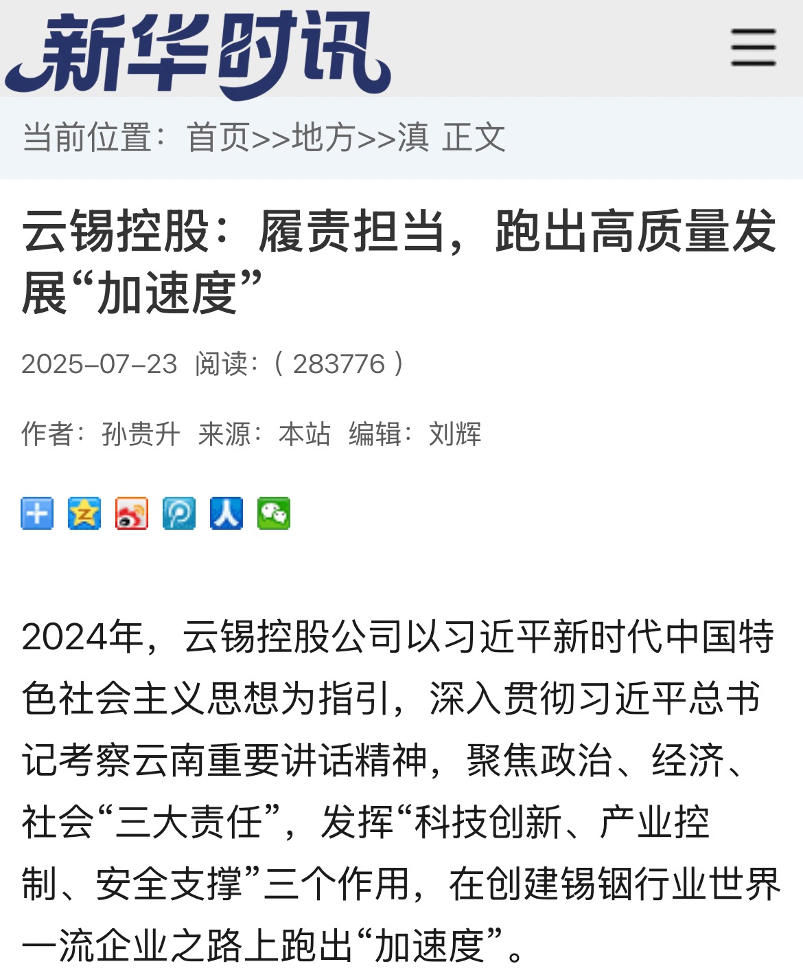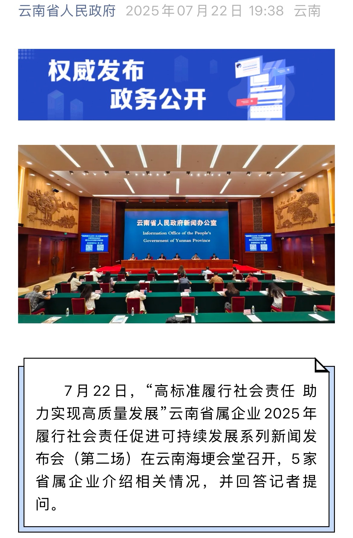 來源:央廣網(wǎng)、央視影音、新華網(wǎng)、新華時(shí)訊、新華財(cái)經(jīng)、中國日?qǐng)?bào)網(wǎng)、中國新聞網(wǎng)、中國網(wǎng)云南新聞聯(lián)播、中華網(wǎng)、云南衛(wèi)視晚間新聞、云南發(fā)布、云南日?qǐng)?bào)、云南日?qǐng)?bào)-云新聞、云南網(wǎng)、七彩云端、云南省人民政府、云嶺先鋒網(wǎng)、云南國資、云南政協(xié)報(bào)、有色金屬報(bào)、信息早報(bào)、中國有色金屬網(wǎng)、有色新聞、騰訊新聞、今日頭條、搜狐、網(wǎng)易、新浪微博、新浪財(cái)經(jīng)、新浪財(cái)經(jīng)、都市時(shí)報(bào)、國泰君安、昆明日?qǐng)?bào)、春城晚報(bào)、昆明信息港、開屏新聞