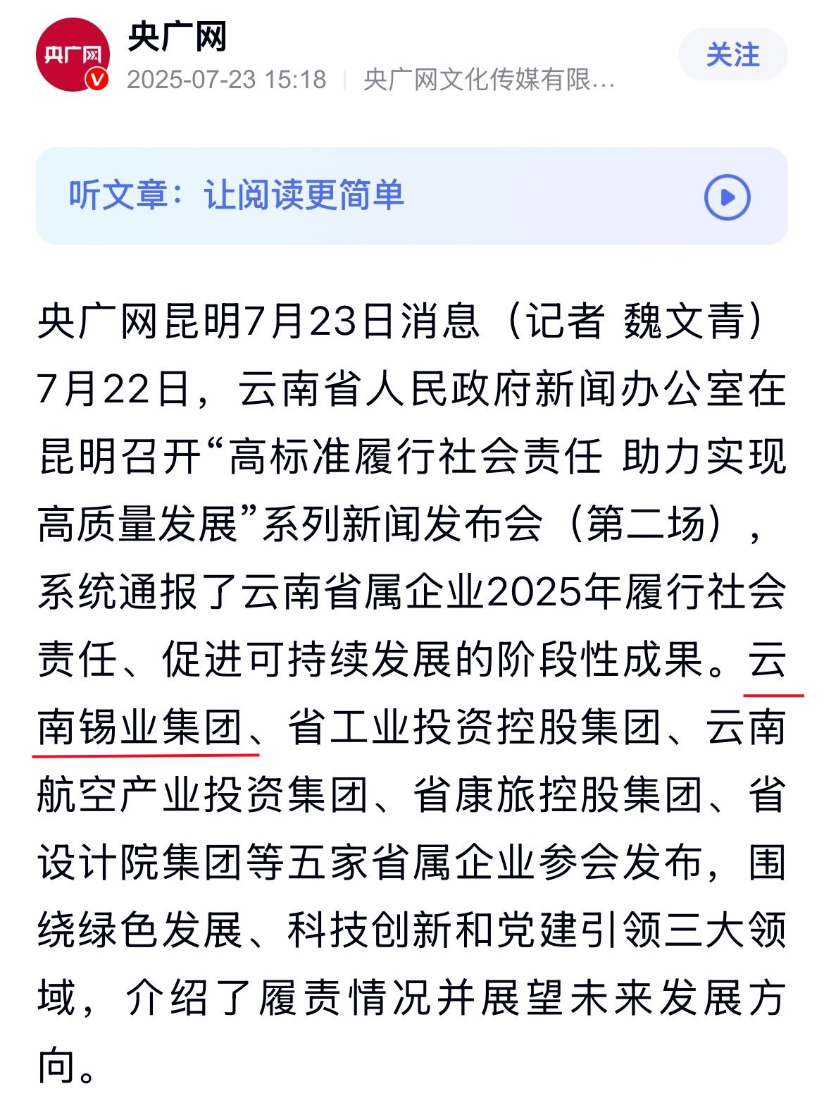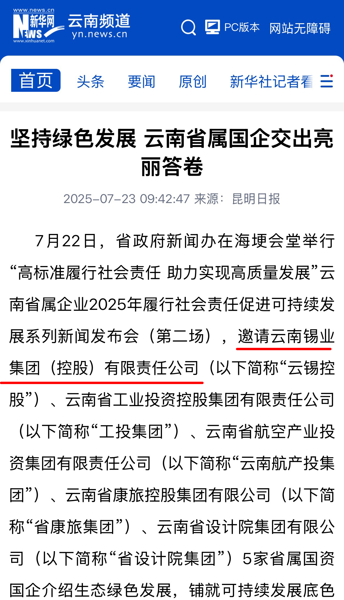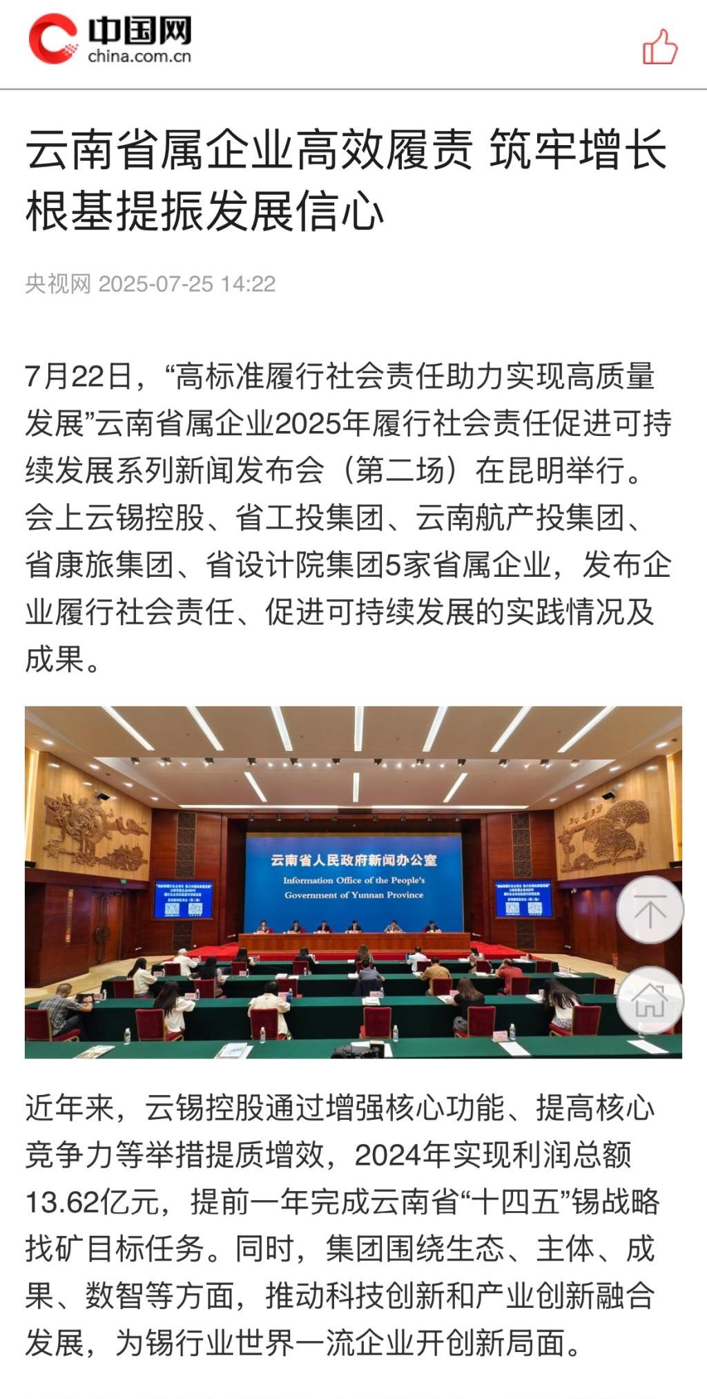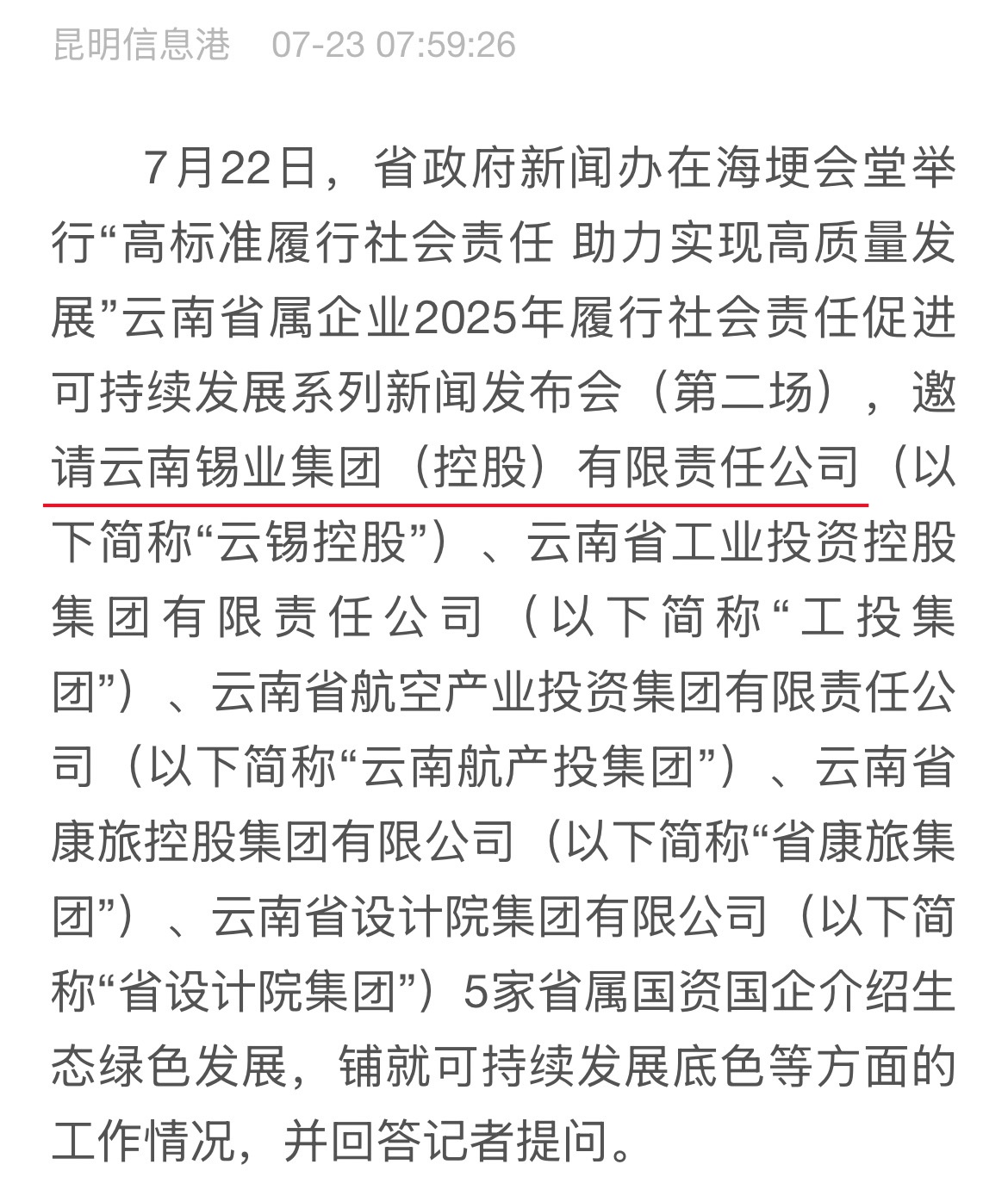 鏈接:(央廣網(wǎng))、(央視影音)、(新華網(wǎng))、(新華時(shí)訊)、(新華財(cái)經(jīng))、(中國日?qǐng)?bào)網(wǎng))、(中國新聞網(wǎng))、(中國網(wǎng))(云南新聞聯(lián)播)、(中華網(wǎng))、(云南衛(wèi)視晚間新聞)、(云南發(fā)布)、(云南日?qǐng)?bào))、(云南日?qǐng)?bào)-云新聞)、(云南網(wǎng))、(七彩云端)、(云南省人民政府)、(云嶺先鋒網(wǎng))、(云南國資)、(云南政協(xié)報(bào))、(有色金屬報(bào))、(信息早報(bào))(中國有色金屬網(wǎng))、(有色新聞)、(騰訊新聞)、(今日頭條)、(搜狐)(搜狐)、(網(wǎng)易)(網(wǎng)易)、(新浪微博)、(新浪財(cái)經(jīng))、(新浪財(cái)經(jīng))(都市時(shí)報(bào))、(國泰君安)、(昆明日?qǐng)?bào))、(春城晚報(bào))、(昆明信息港)、(開屏新聞)