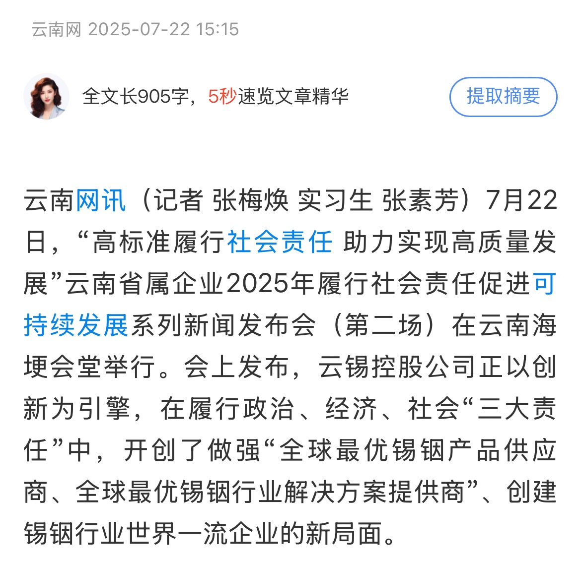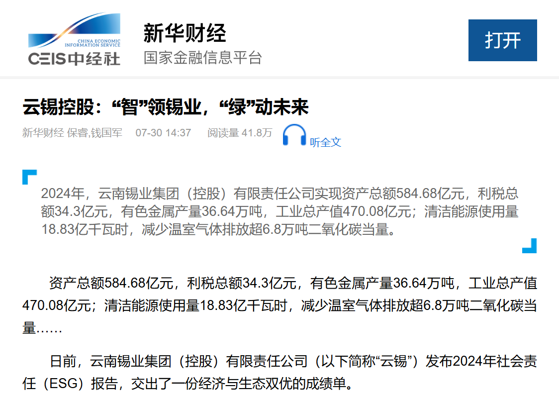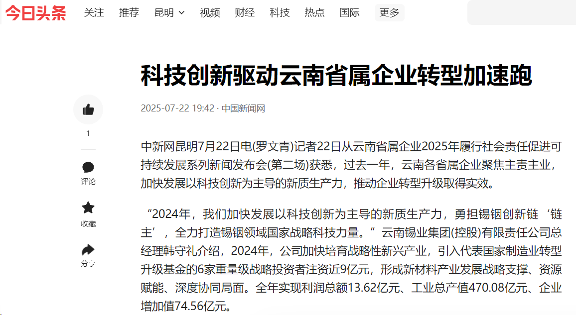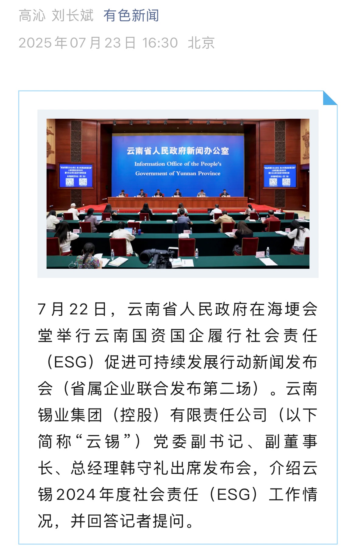 鏈接:(央廣網(wǎng))、(央視影音)、(新華網(wǎng))、(新華時(shí)訊)、(新華財(cái)經(jīng))、(中國日?qǐng)?bào)網(wǎng))、(中國新聞網(wǎng))、(中國網(wǎng))(云南新聞聯(lián)播)、(中華網(wǎng))、(云南衛(wèi)視晚間新聞)、(云南發(fā)布)、(云南日?qǐng)?bào))、(云南日?qǐng)?bào)-云新聞)、(云南網(wǎng))、(七彩云端)、(云南省人民政府)、(云嶺先鋒網(wǎng))、(云南國資)、(云南政協(xié)報(bào))、(有色金屬報(bào))、(信息早報(bào))(中國有色金屬網(wǎng))、(有色新聞)、(騰訊新聞)、(今日頭條)、(搜狐)(搜狐)、(網(wǎng)易)(網(wǎng)易)、(新浪微博)、(新浪財(cái)經(jīng))、(新浪財(cái)經(jīng))(都市時(shí)報(bào))、(國泰君安)、(昆明日?qǐng)?bào))、(春城晚報(bào))、(昆明信息港)、(開屏新聞)
