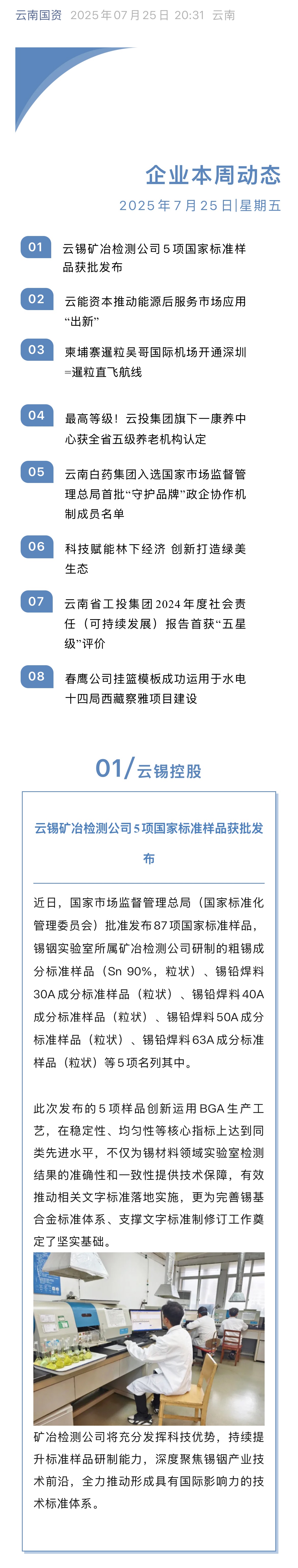 云南國資:云錫礦冶檢測(cè)公司5項(xiàng)國家標(biāo)準(zhǔn)樣品獲批發(fā)布