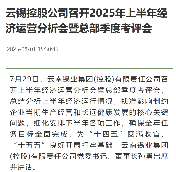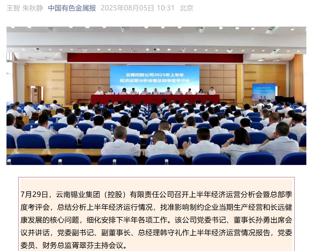 來源:中國有色金屬報、中國有色金屬工業(yè)網(wǎng)、云南政協(xié)報