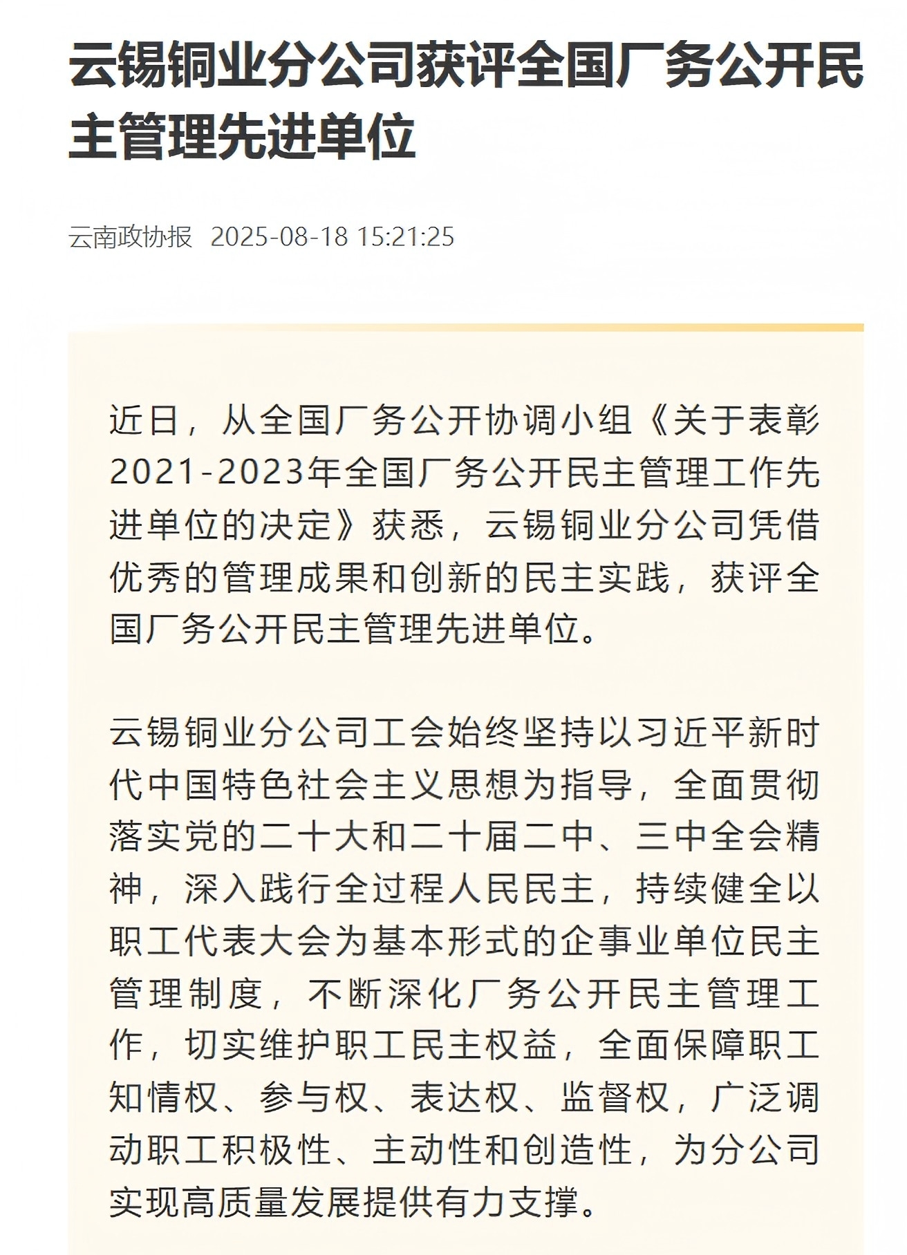 鏈接:(有色新聞)、(云南政協(xié)報)