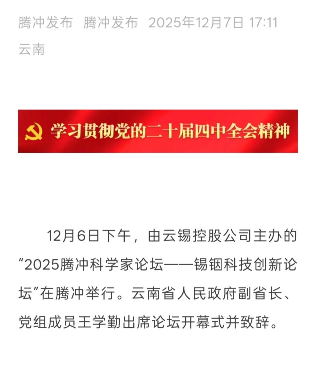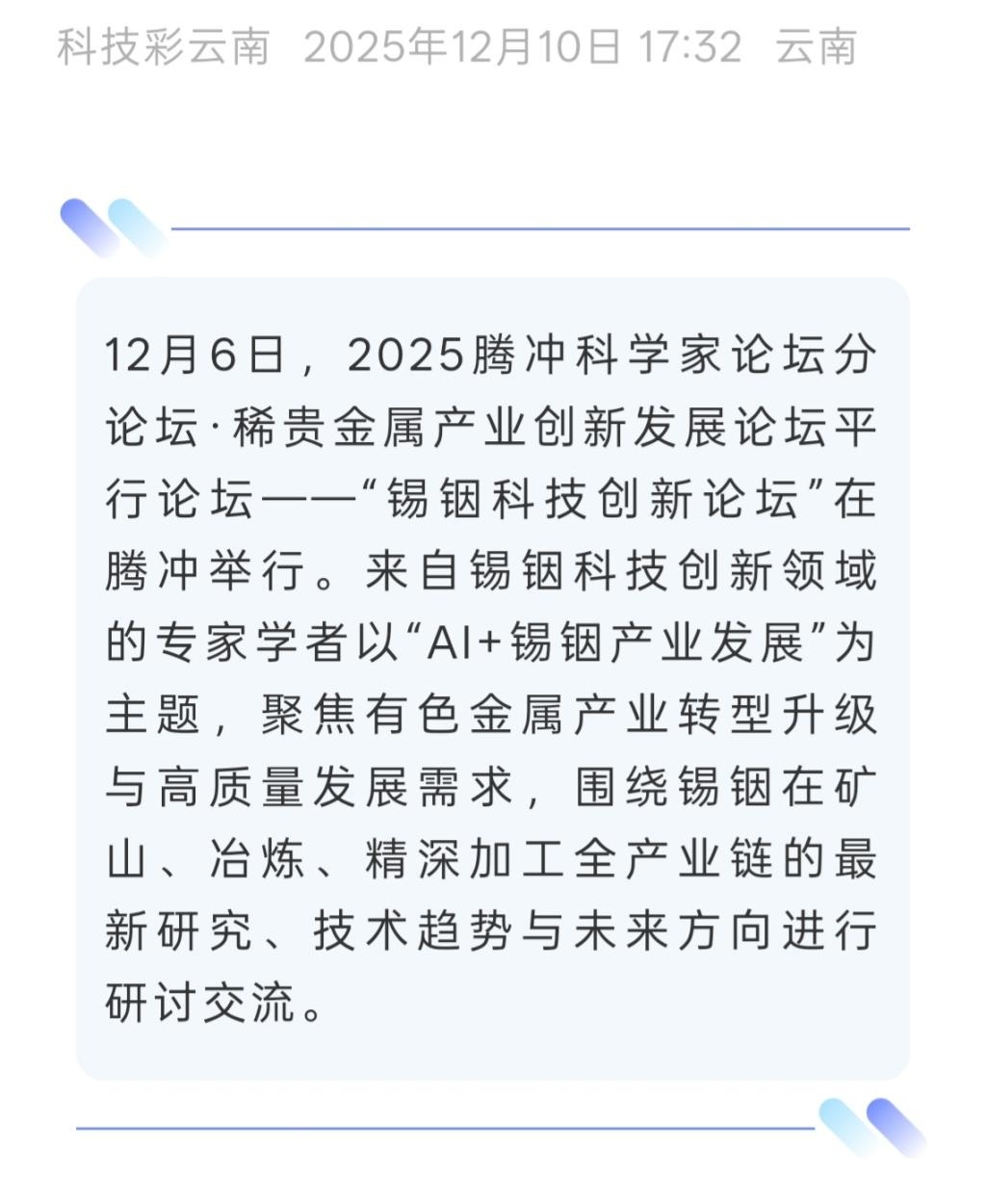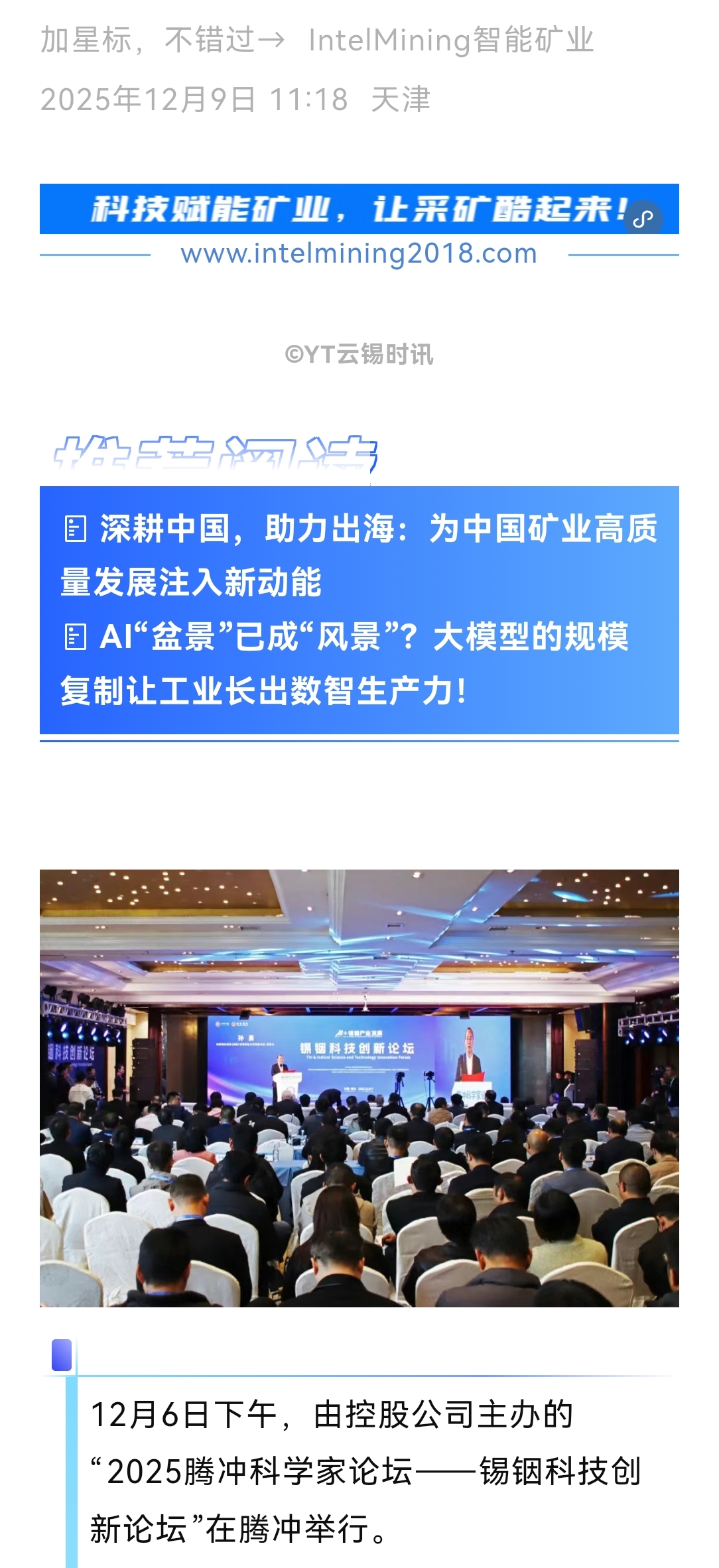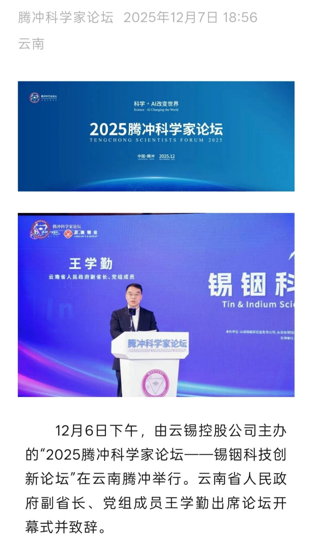 來源:云南日?qǐng)?bào)、云南省科學(xué)技術(shù)院、騰沖發(fā)布、騰沖科學(xué)家論壇、IntelMining智能礦業(yè)、科技彩云南、有色新聞
