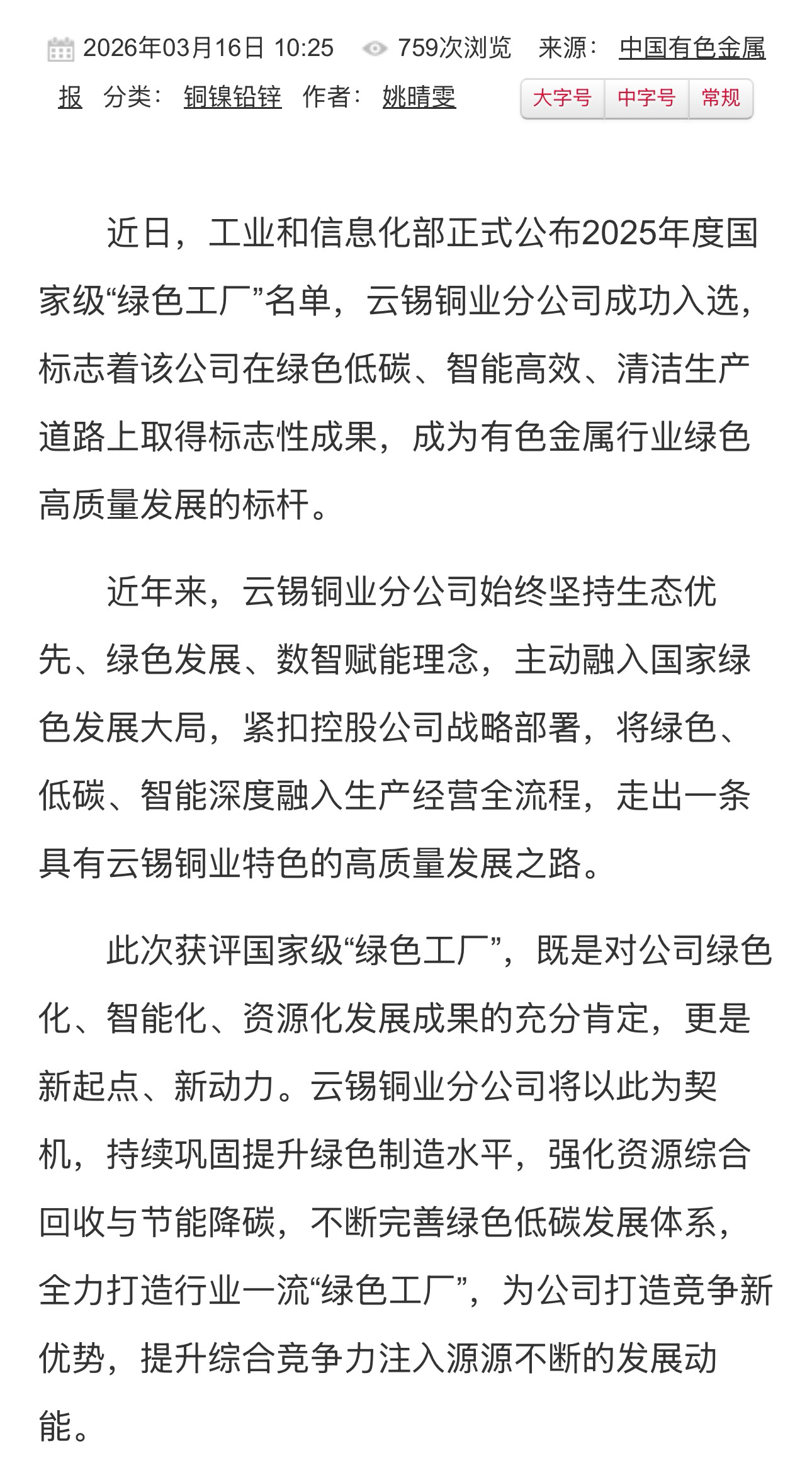 鏈接:(中國有色金屬雜志)、(中國有色金屬報(bào))、(中國有色金屬網(wǎng))、(云南政協(xié)報(bào))、(銅基新材料)