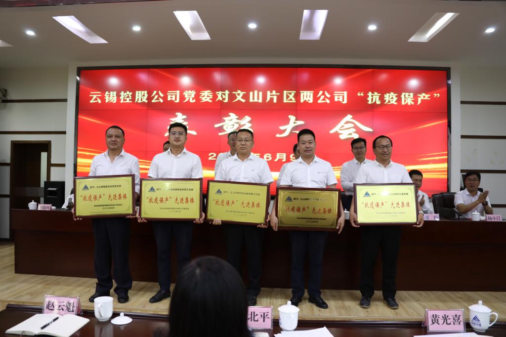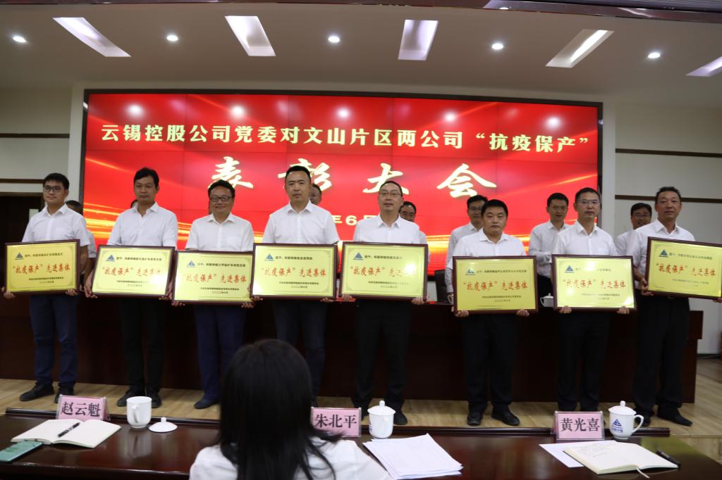 千難萬險(xiǎn)何所懼,大戰(zhàn)大考煉真金。6月9日下午,云錫控股公司黨委對(duì)云錫文山片區(qū)兩公司“抗疫保產(chǎn)”表彰大會(huì)在華聯(lián)鋅銦五樓會(huì)議室隆重召開,總結(jié)回顧今年4月文山兩公司不平凡的疫情防控阻擊戰(zhàn)、保供保鏈攻堅(jiān)戰(zhàn)歷程,進(jìn)一步動(dòng)員激勵(lì)兩公司干部職工弘揚(yáng)偉大抗疫精神,積極投身云錫打造全球錫銦行業(yè)全產(chǎn)業(yè)鏈“獨(dú)角獸”、打造文山片區(qū)百億鋅銦產(chǎn)業(yè)的新征程。