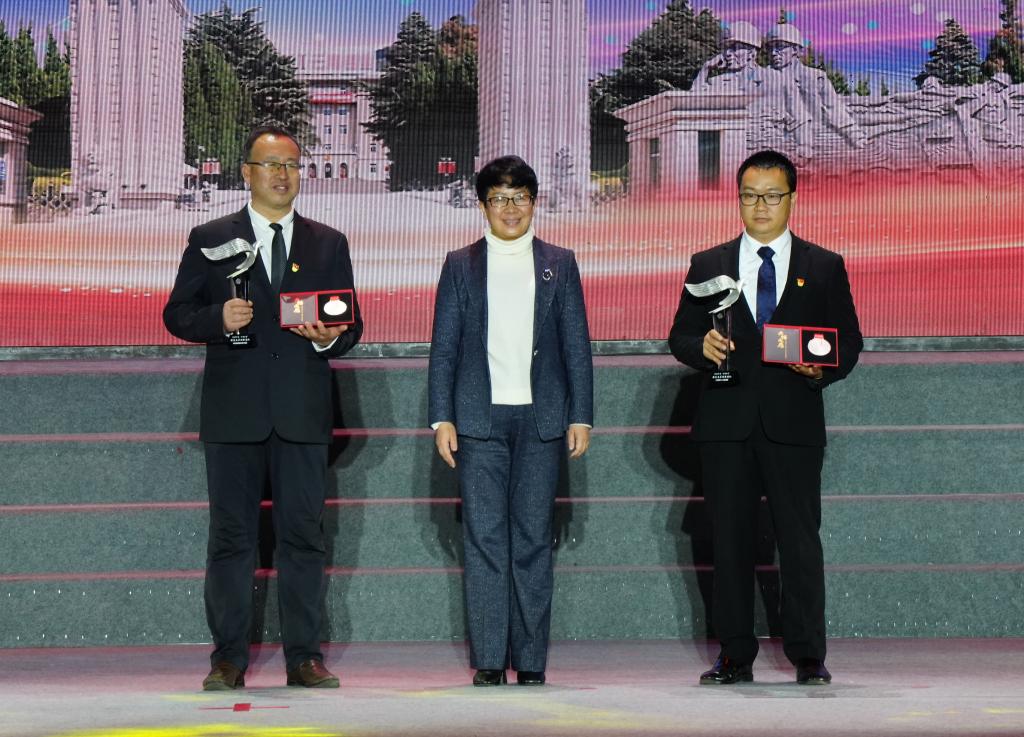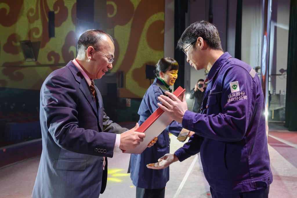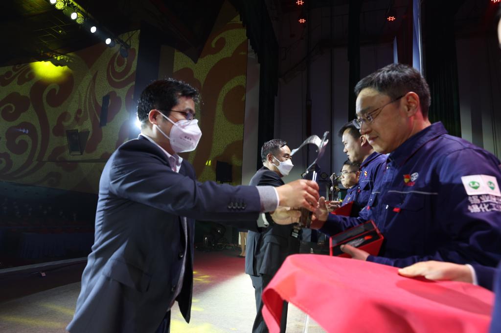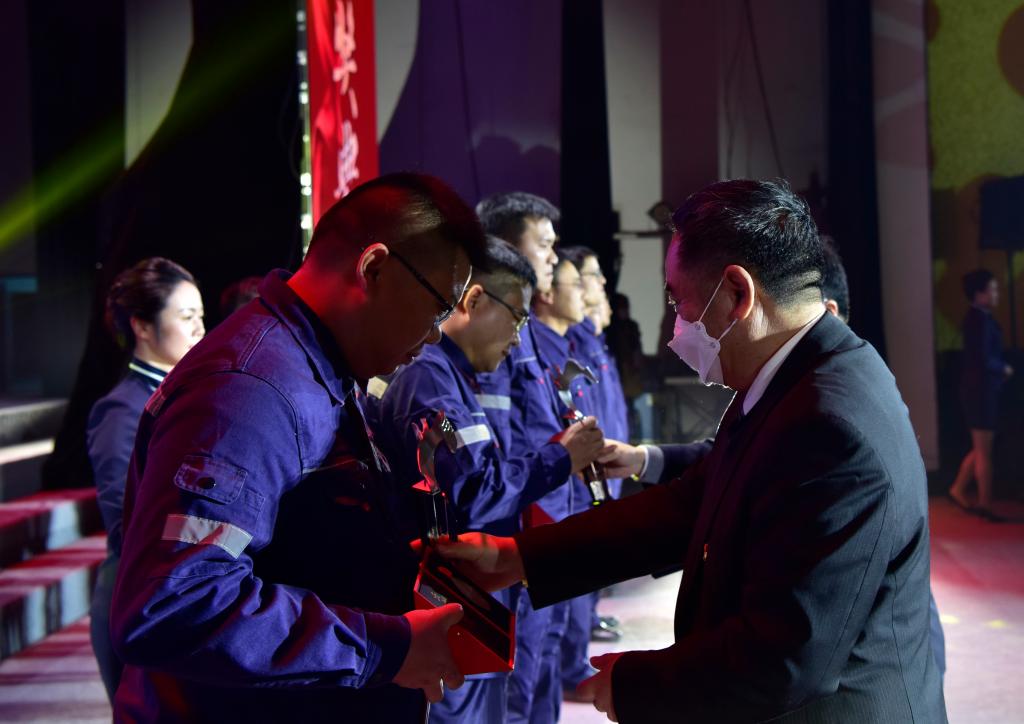 (控股公司黨委常委、副總經(jīng)理韓守禮,財(cái)務(wù)總監(jiān)李向丹為“云錫之鷹”十佳崗位能手頒獎(jiǎng))