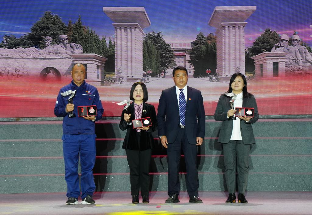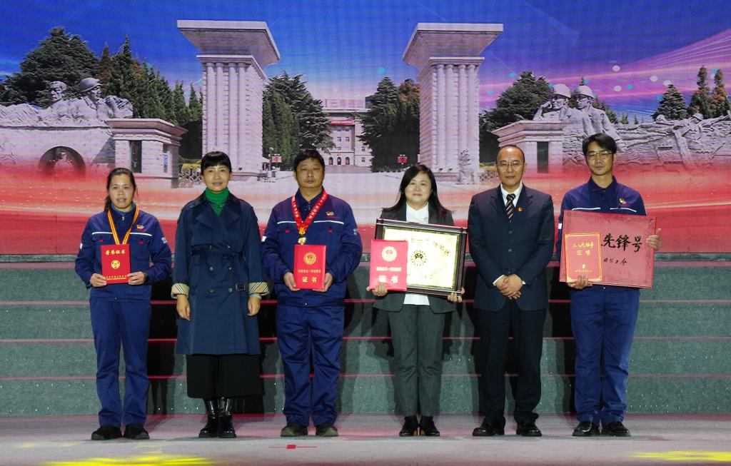 (紅河州委副書(shū)記、州長(zhǎng)羅萍與孫勇為云南省“三八紅旗手”、云南省五一勞動(dòng)獎(jiǎng)?wù)隆⒃颇鲜∥逡粍趧?dòng)獎(jiǎng)狀以及全國(guó)工人先鋒號(hào)頒獎(jiǎng))