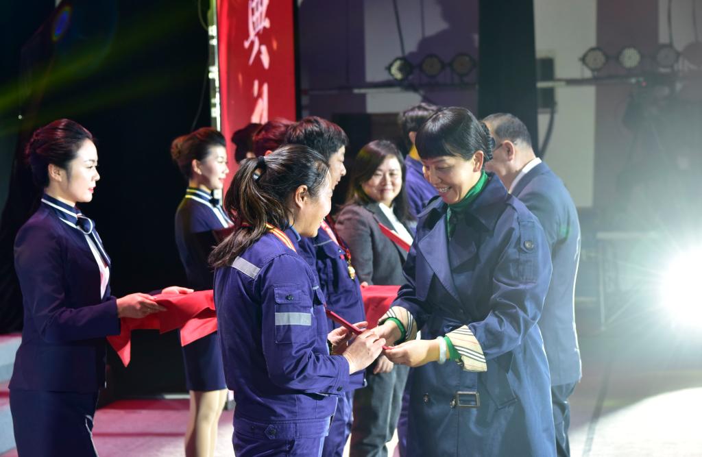 (控股公司黨委常委、組織人力部部長(zhǎng)吳君為“云錫之鷹”十大工匠頒獎(jiǎng))
