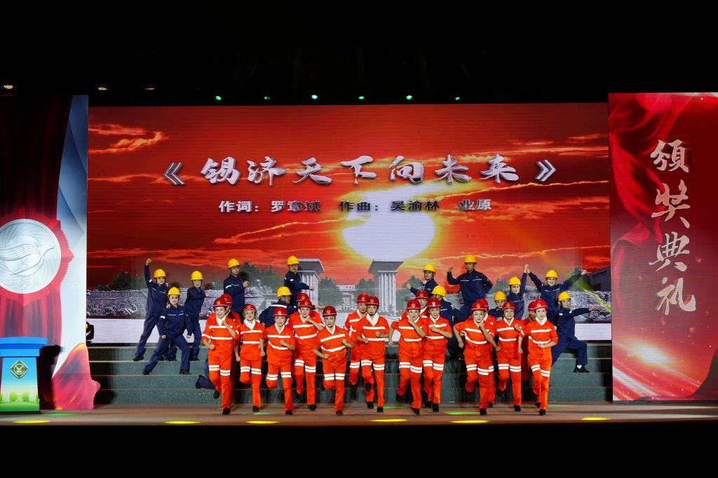 頒獎(jiǎng)期間,由云錫職工藝術(shù)團(tuán)精心打磨的節(jié)目紛紛上演。伴隨著干凈利落的群舞表演,全新制作的MV《錫濟(jì)天下向未來(lái)》正式發(fā)布,生動(dòng)詮釋了百年云錫“繼往開(kāi)來(lái)使命在”的堅(jiān)定豪邁,激勵(lì)著一代代云錫人續(xù)寫(xiě)“幸福路上看花開(kāi)”的奮進(jìn)華章。