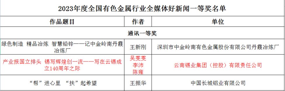 此次評(píng)選共有696件作品參評(píng)。云錫《產(chǎn)業(yè)報(bào)國(guó)立排頭 錫寫輝煌創(chuàng)一流——寫在云錫成立140周年之際》等2件作品榮獲一等獎(jiǎng),《以學(xué)促干創(chuàng)新發(fā)展 云錫控股打造錫銦行業(yè)世界一流示范企業(yè)》等3件作品榮獲二等獎(jiǎng),《譜好“四部曲”奏響主題教育與深化改革主旋律》等2件作品榮獲三等獎(jiǎng)。
