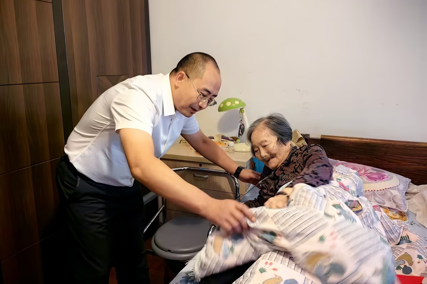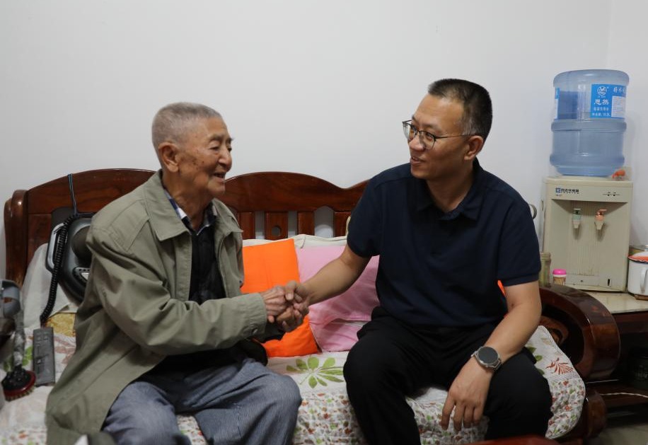 控股公司副總經理楊濤走訪慰問離休干部胡定英(李雯/攝)