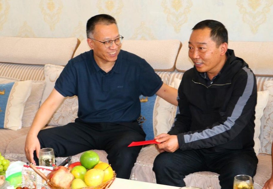 控股公司黨委委員、副總經理宋興誠走訪慰問錫都實業(yè)全國先進生產者佟福科(徐純/攝)
