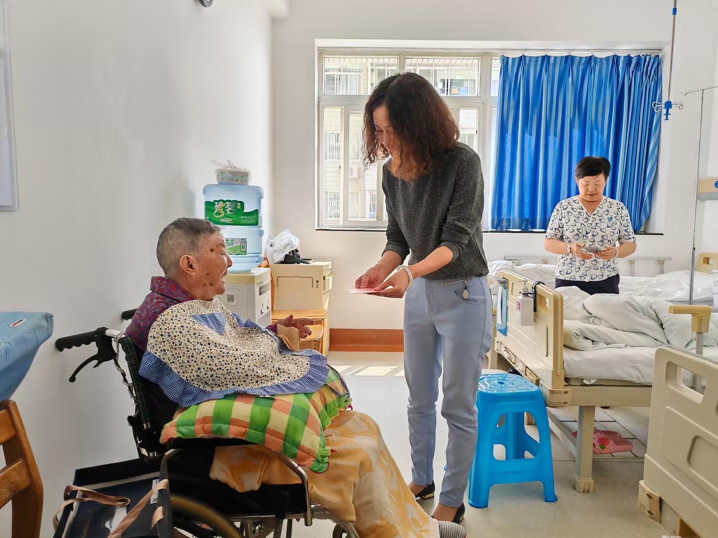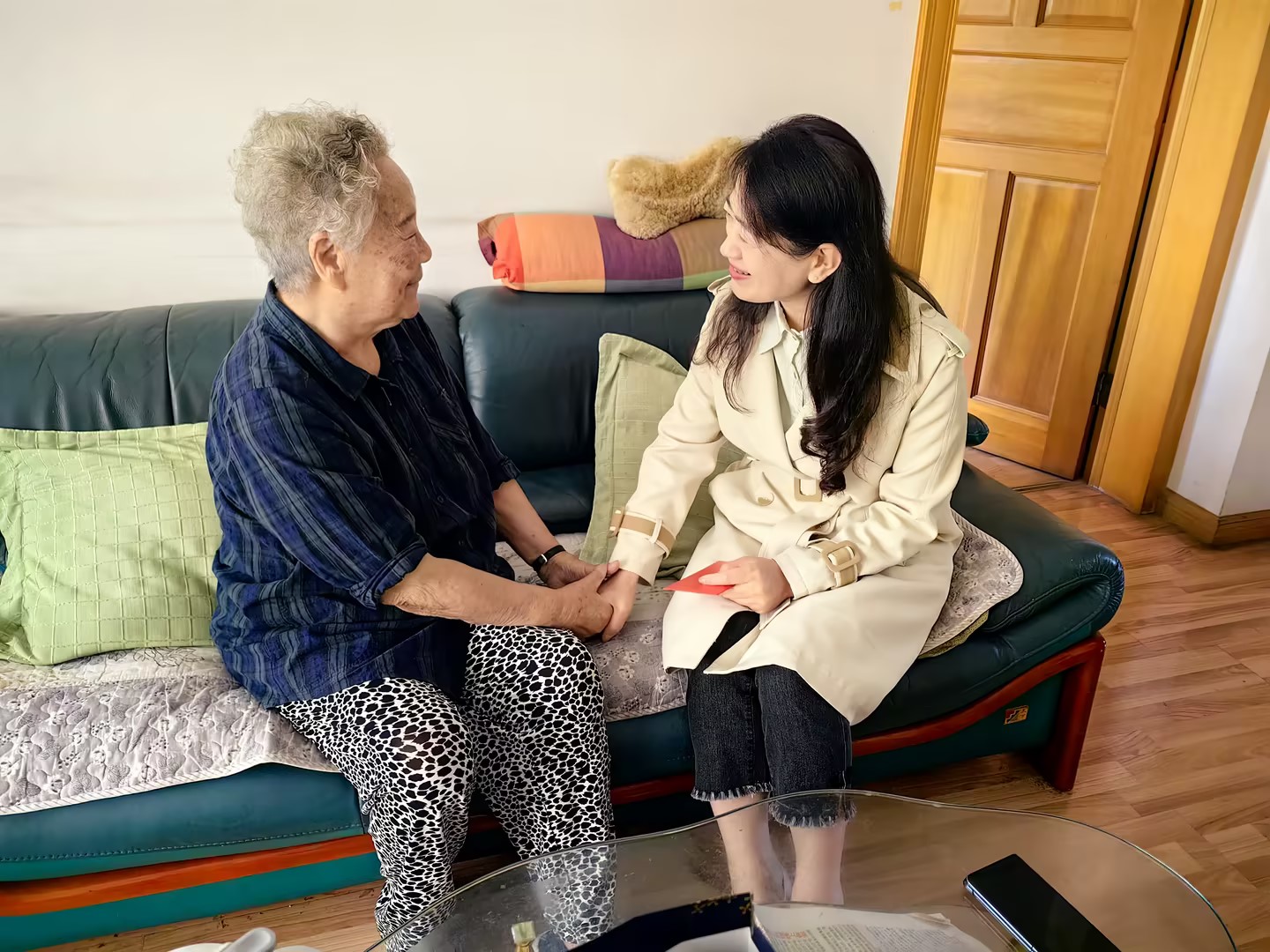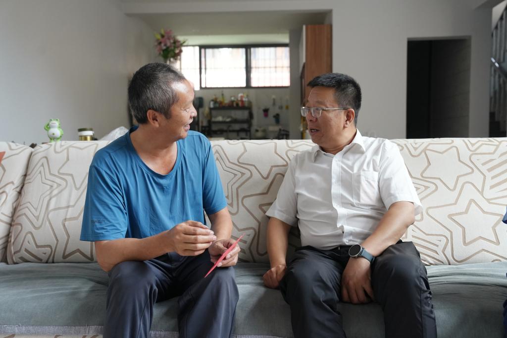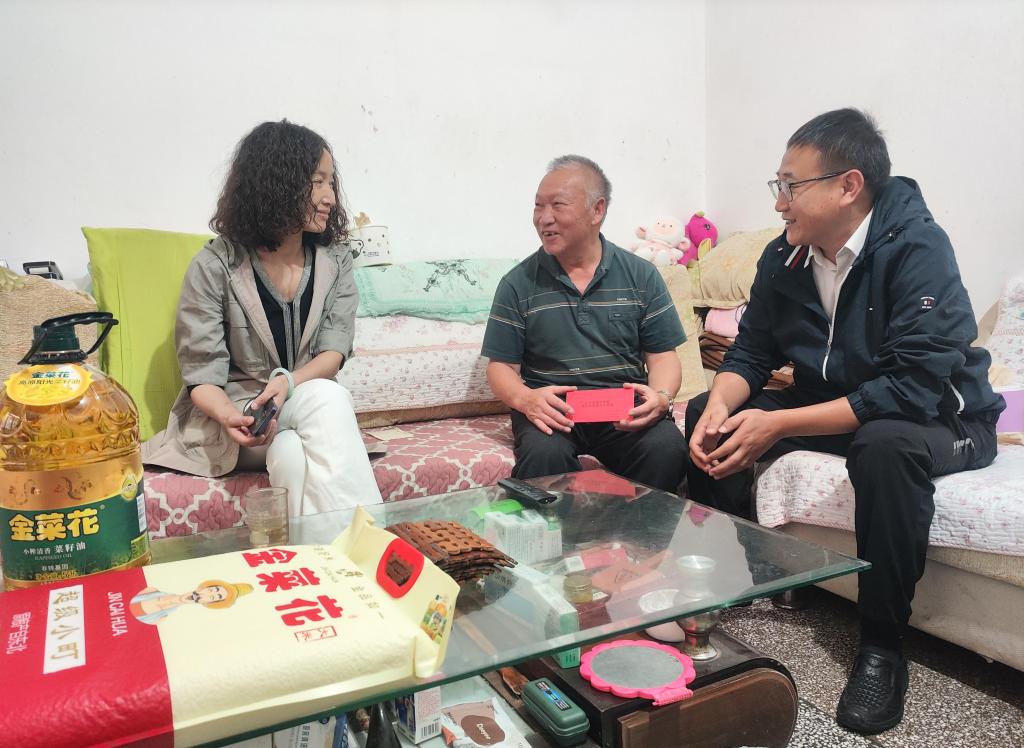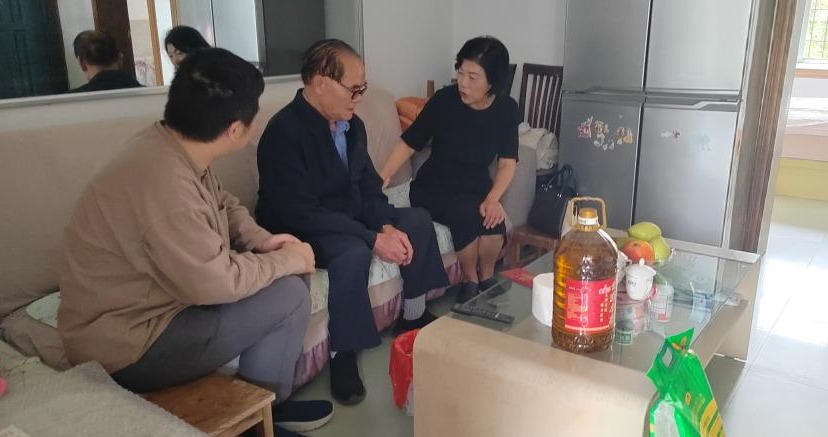 控股公司黨委委員、財務總監(jiān)胥翠芬走訪慰問退休困難人員黃喬有(程雪銳/攝)