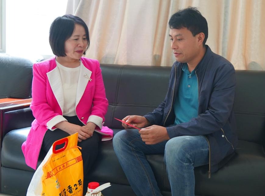 控股公司紀委書記、監(jiān)察專員蘭菊走訪慰問錫業(yè)分公司困難職工吳學堯(姚盈伶/攝)