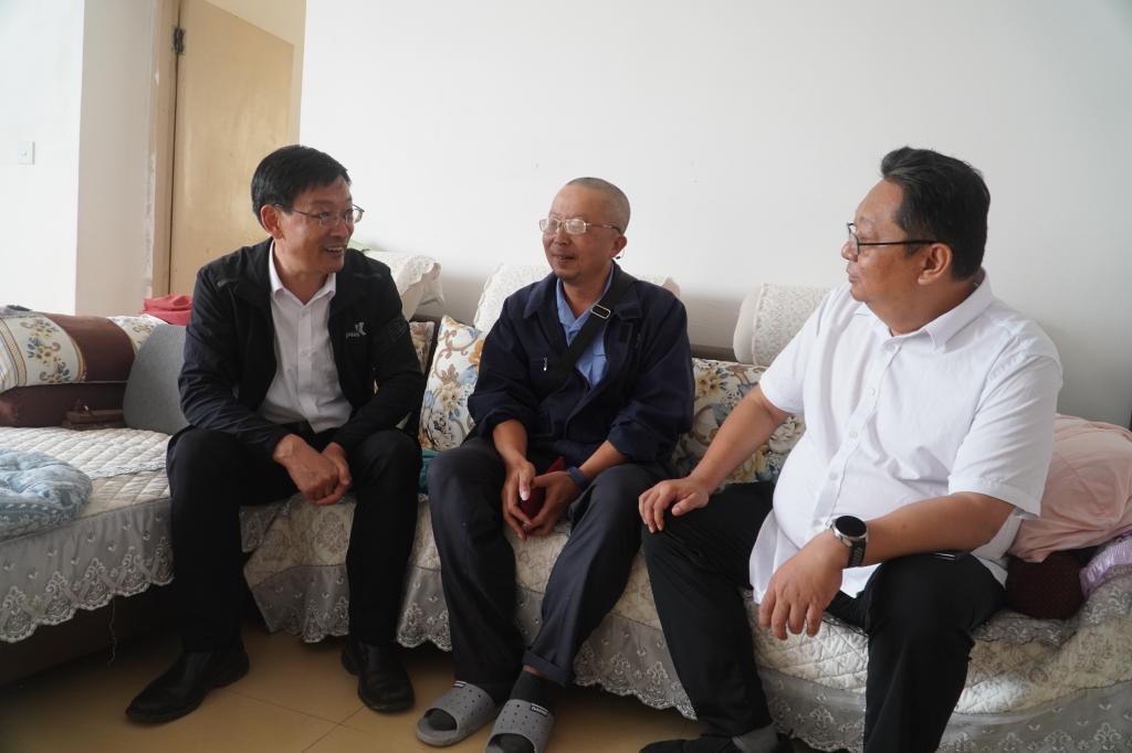 控股公司黨委委員、副總經理宋興誠走訪慰問錫都實業(yè)困難職工魏紅鋼(徐純/攝)