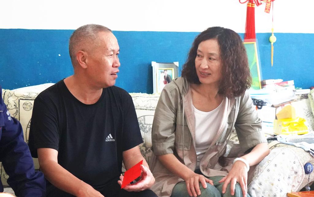 控股公司黨委委員、財務總監(jiān)胥翠芬走訪慰問大屯錫礦困難職工白老卜(尚海英/攝)