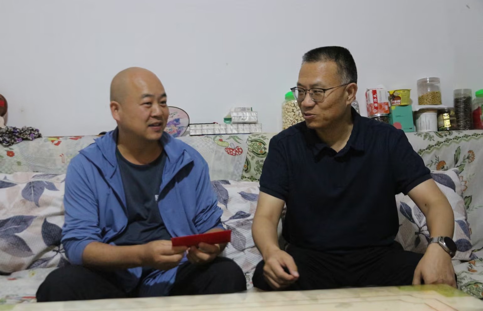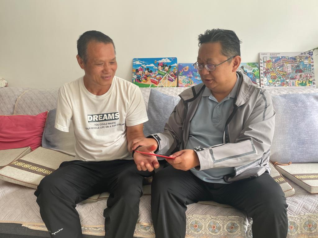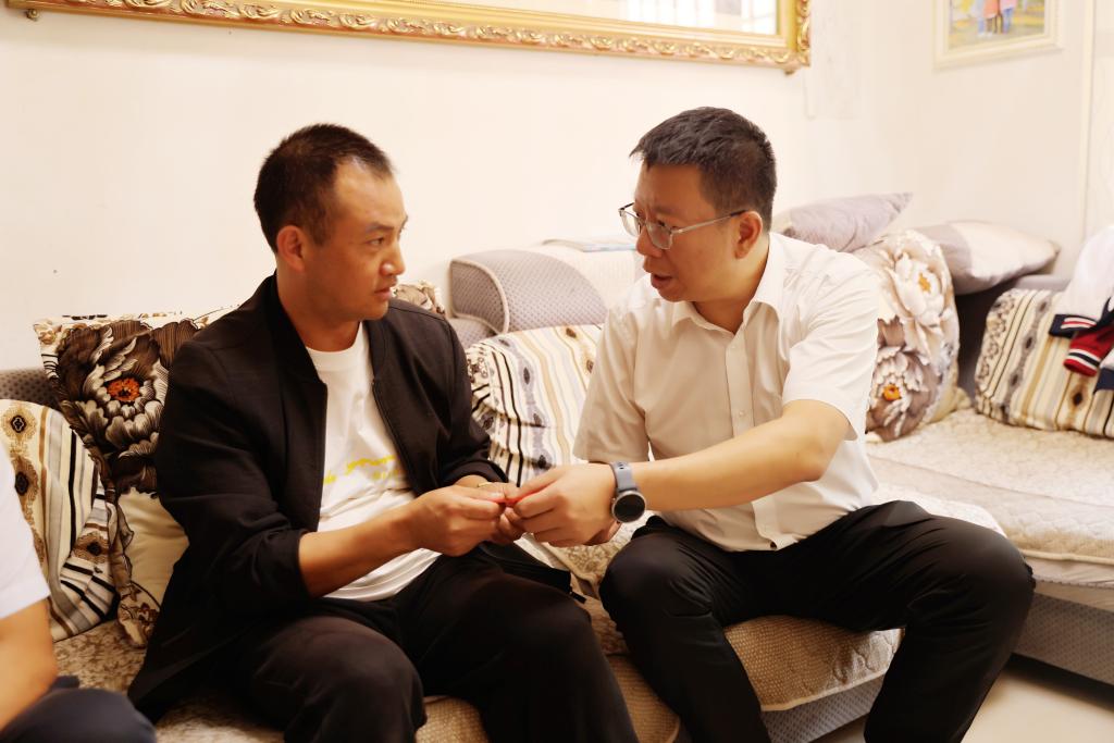 控股公司黨委副書記、工會主席劉俊走訪慰問新材料公司困難職工張文科(胡艷華/攝)