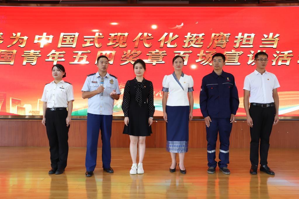 活動在觀看第28屆中國青年五四獎章宣傳片中拉開序幕。6位分獲“中國青年五四獎章”“云南青年五四獎章”以及云南省“兩紅兩優(yōu)”等榮譽的先進集體代表和優(yōu)秀個人依次登臺,圍繞學思踐悟習近平新時代中國特色社會主義思想,在水稻培育、鐵路建設、科技創(chuàng)新、消防救援、衛(wèi)國戍邊等領域崗位建功進行宣講,分享他們立足本職、矢志奮斗、挺膺擔當的青春故事,生動講述“有理想、敢擔當、能吃苦、肯奮斗”的勵志青春。他們把青春化作為中國式現(xiàn)代化挺膺擔當的動人瞬間,用無數次的挑戰(zhàn)自我、奮力拼搏和日夜堅守,詮釋了新時代中國青年應有的樣子。