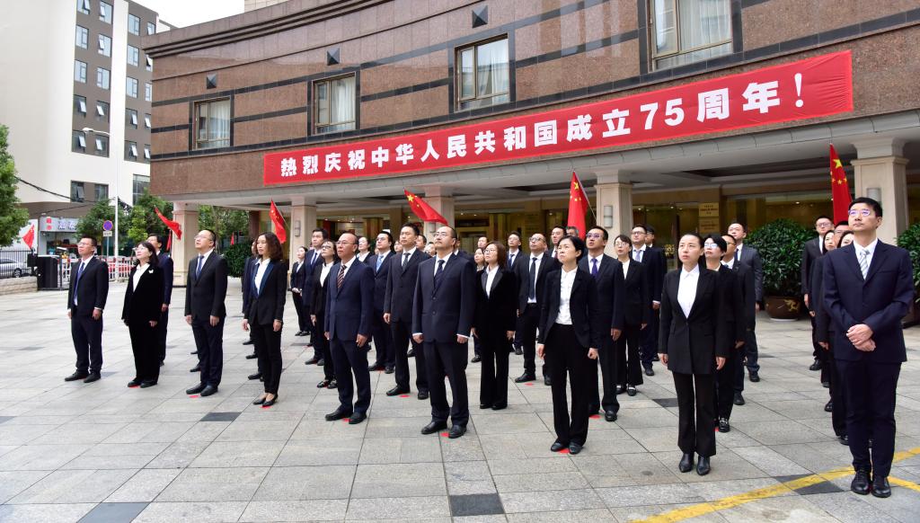 在卡房分公司,50余名干部職工參加升國旗儀式。伴隨著國歌聲,向國旗行注目禮,向偉大祖國表達(dá)崇高敬意。(張瑞華 董通)