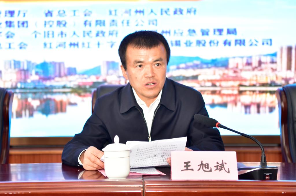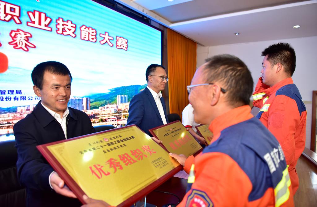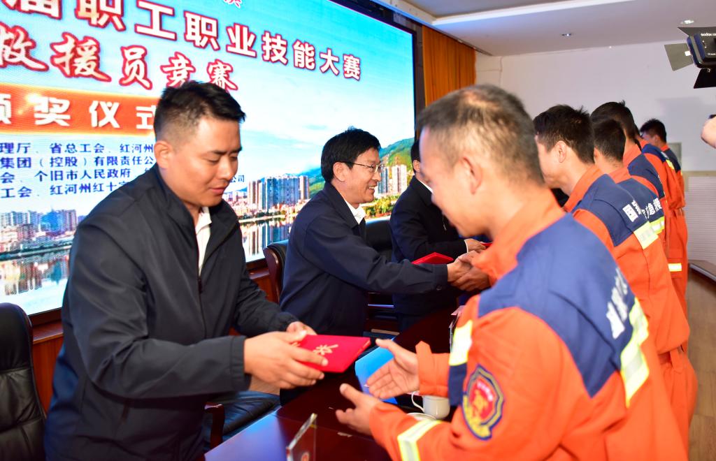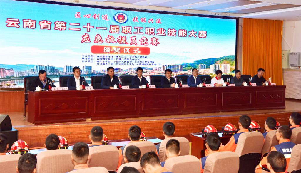 10月27日上午,云南省第二十一屆職工職業(yè)技能大賽應(yīng)急救援員競(jìng)賽閉幕式在云錫職院舉行。省應(yīng)急管理廳黨委委員、副廳長(zhǎng)王旭斌講話。控股公司黨委副書記、工會(huì)主席劉俊,黨委委員、副總經(jīng)理宋興誠出席。