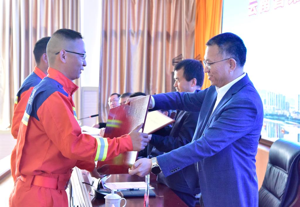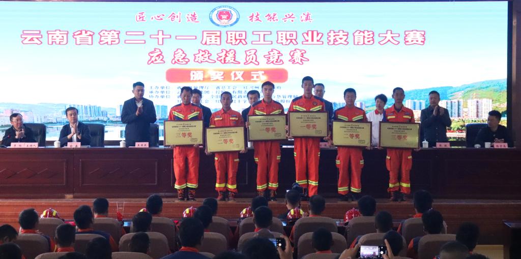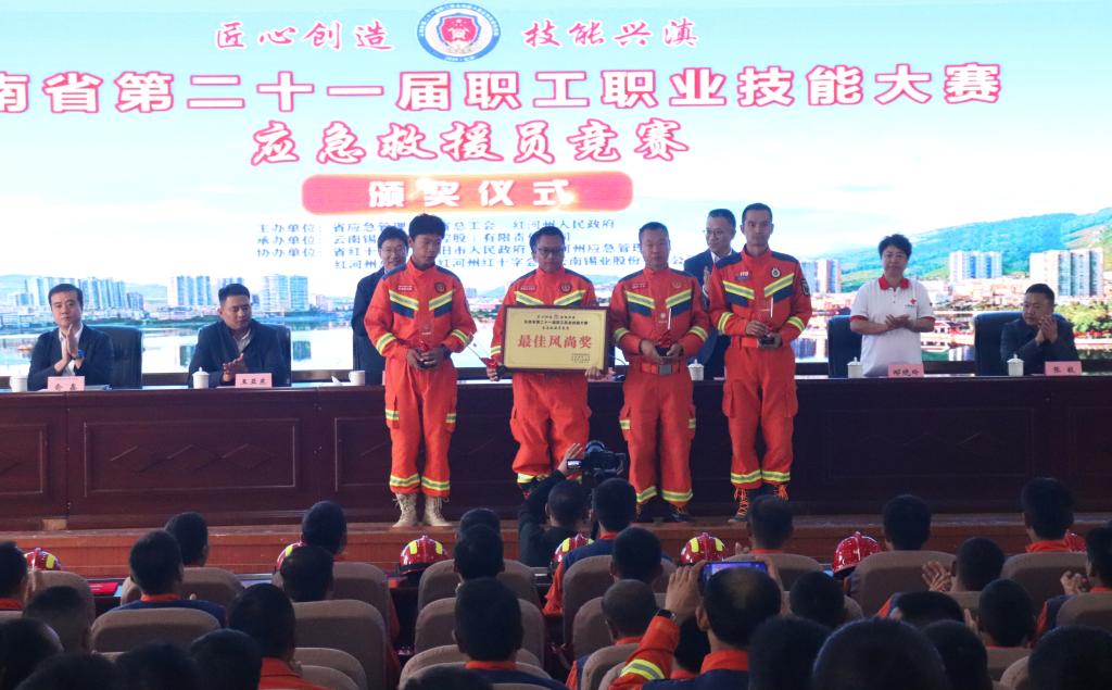 省應(yīng)急管理廳救援協(xié)調(diào)和預(yù)案管理處處長(zhǎng)李柱主持閉幕式并宣布競(jìng)賽成績(jī)。云錫應(yīng)急救援隊(duì)獲團(tuán)體第六名、礦山冒頂事故處置科目第三名、最佳風(fēng)尚獎(jiǎng)。