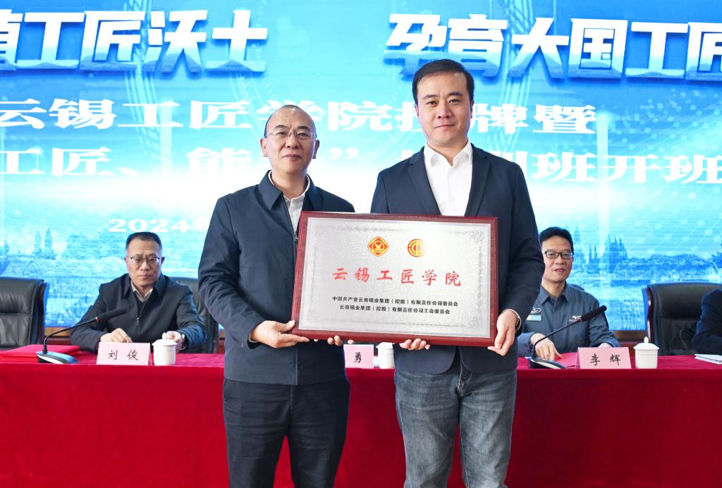 控股公司黨委副書記、工會(huì)主席劉俊宣讀成立云錫工匠學(xué)院的文件。