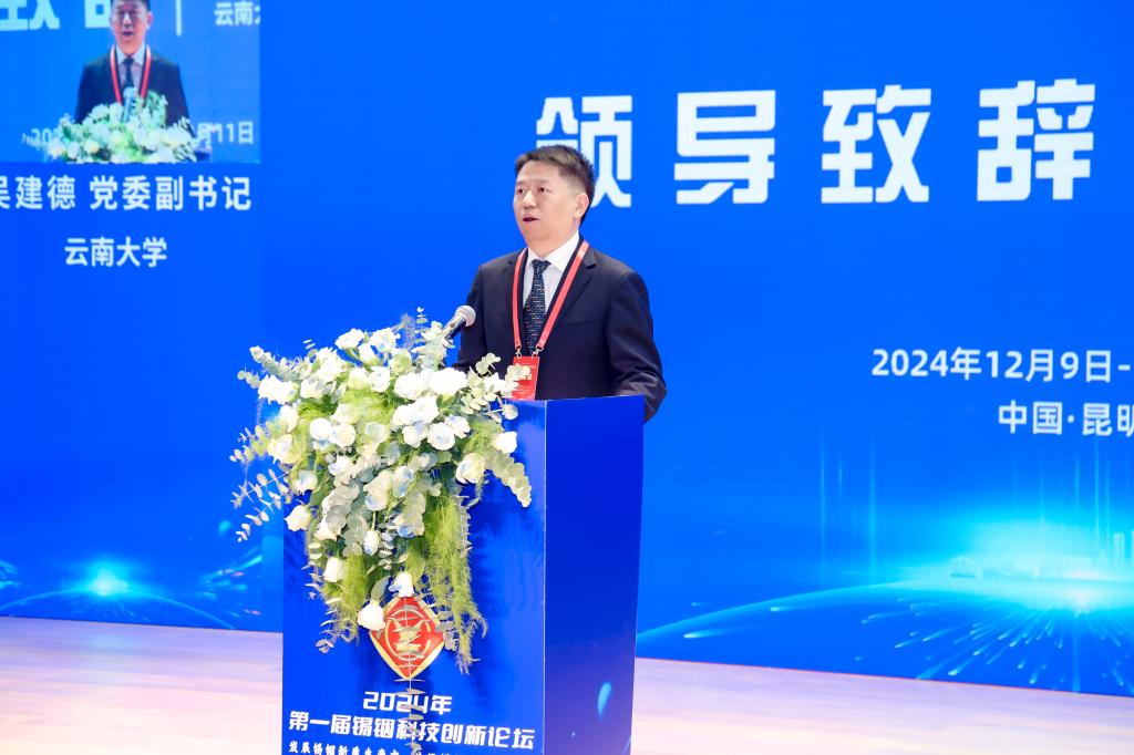 云南大學(xué)黨委副書記吳建德在致辭中表示,期望深化校企合作,強(qiáng)化人才引育,實(shí)現(xiàn)自立自強(qiáng),催生更多原創(chuàng)性、顛覆性的科技成果,在全球錫銦新材料科技競(jìng)爭(zhēng)中贏得更多話語權(quán)和主動(dòng)權(quán)。