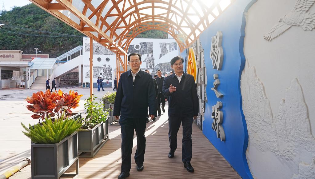 在大屯錫礦,許大純參觀1360平臺、“錫之源”文化長廊、科技展廳和綜合調(diào)度指揮中心,直觀感受云錫建設(shè)綠色智慧礦山的做法及成效。