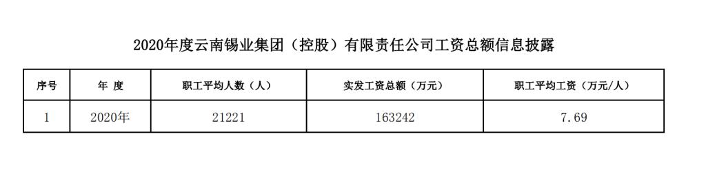 2020年度云南錫業(yè)集團(tuán)(控股)有限責(zé)任公司工資總額信息披露