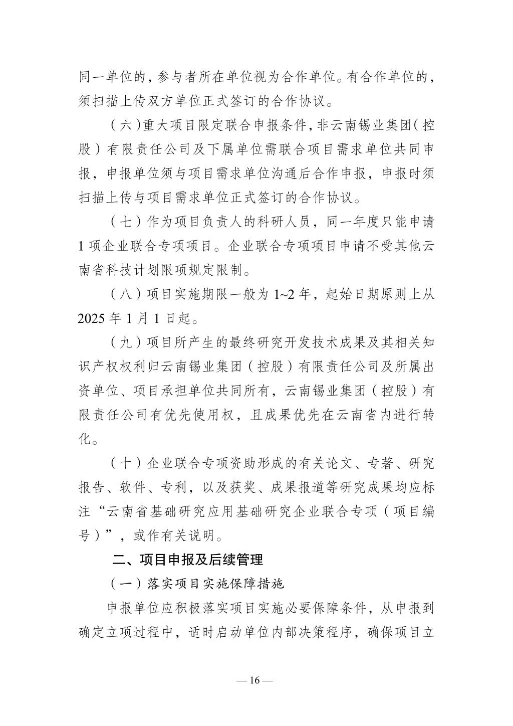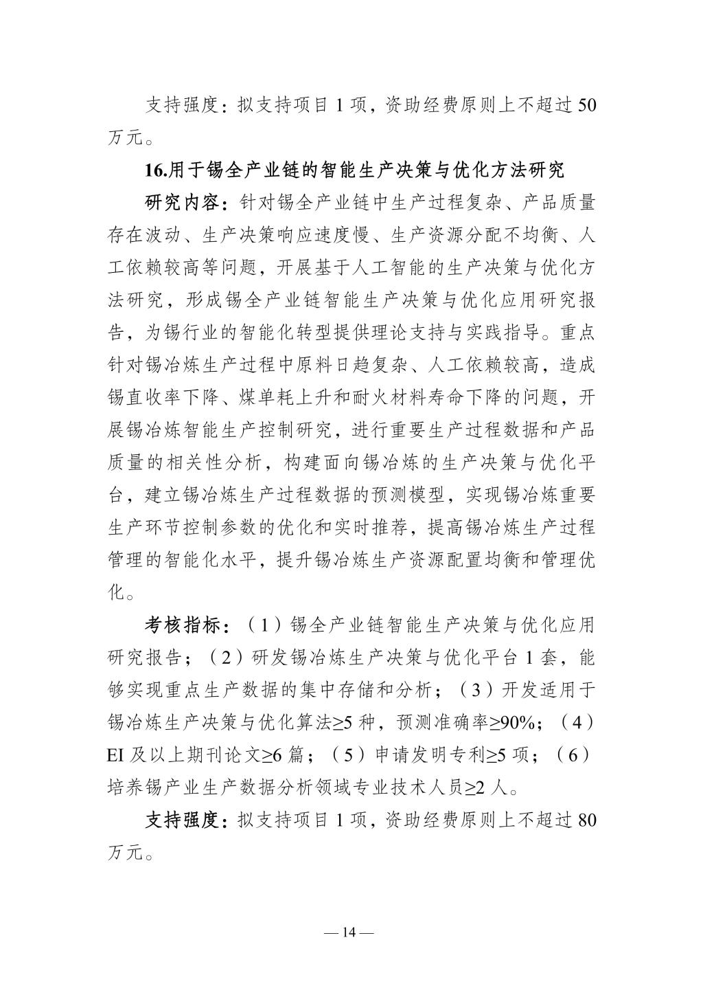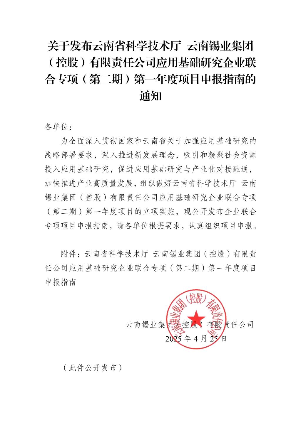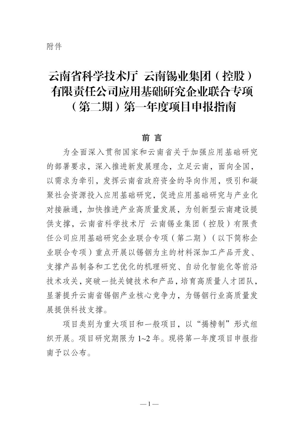 關于發(fā)布云南省科學技術廳 云南錫業(yè)集團(控股)有限責任公司應用基礎研究企業(yè)聯(lián)合專項(第二期)第一年度項目申報指南的通知