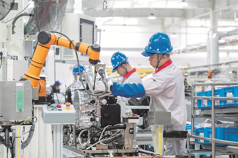 安徽省蕪湖市立足本地發(fā)展實際,持續(xù)推動科技創(chuàng)新和產(chǎn)業(yè)創(chuàng)新深度融合,以汽車首位產(chǎn)業(yè)為龍頭,帶動多元產(chǎn)業(yè)協(xié)同發(fā)展。圖為該市繁昌經(jīng)濟(jì)開發(fā)區(qū)某企業(yè)智能生產(chǎn)線上,工人在生產(chǎn)新能源汽車變速箱。圖片來源:視覺中國